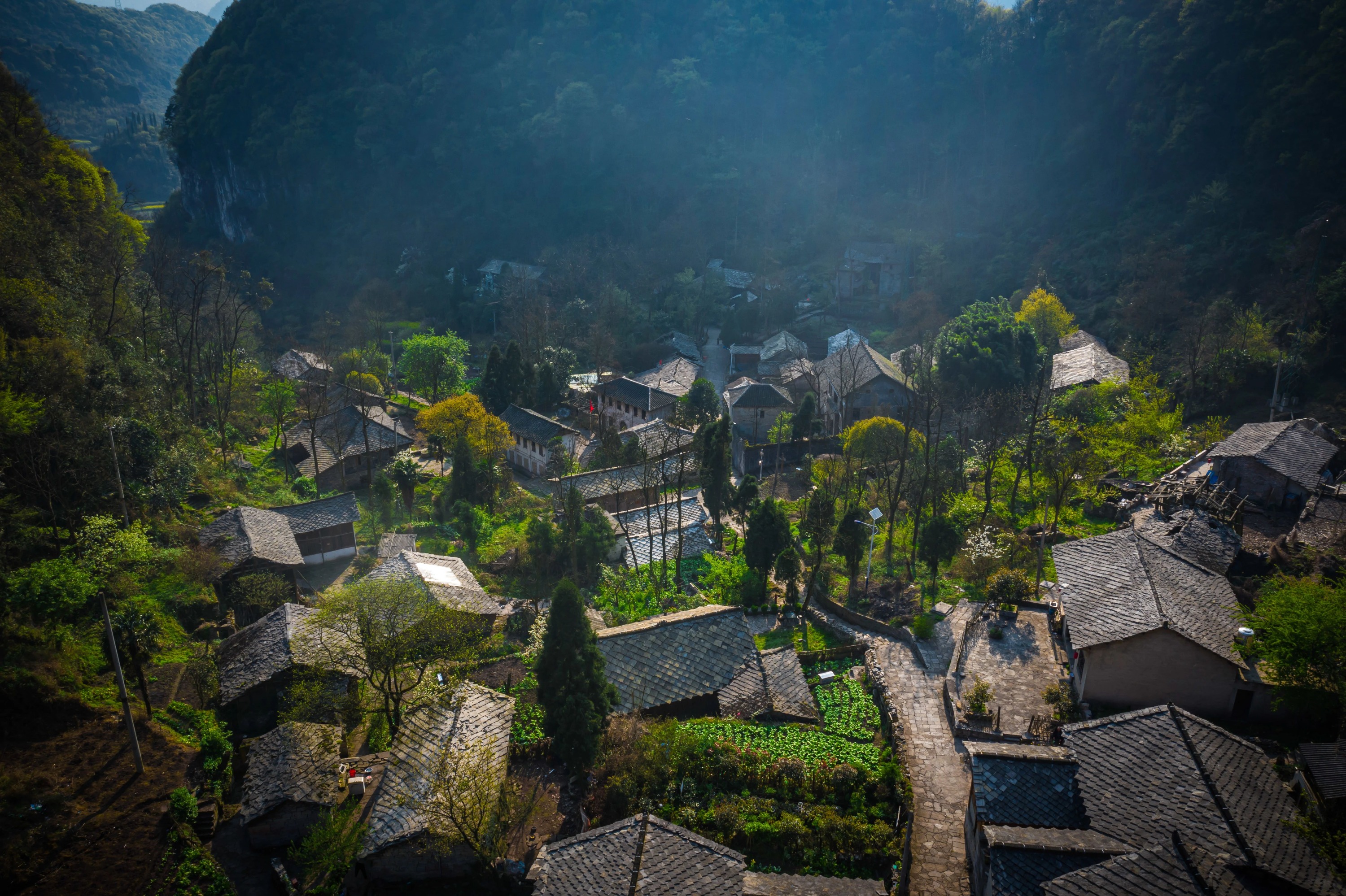 云山屯(古代屯田的百科全书),云山屯坐落在云鹫山峡谷中,由东、南两屯门为前后关口,村寨古民居建筑于谷地两侧,或单体式、三合院式、四合院式、平行排列式顺山体布局。