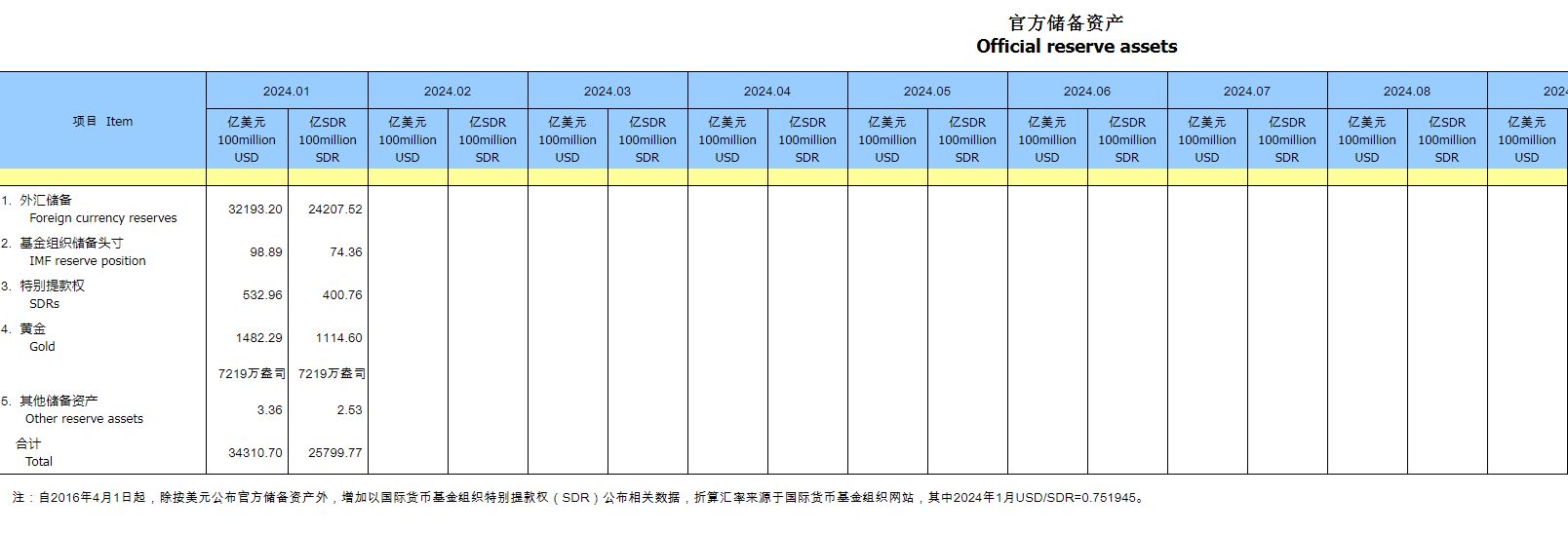 2024年1月末 我国央行黄金储备报7219万盎司 为连续第15个月增持