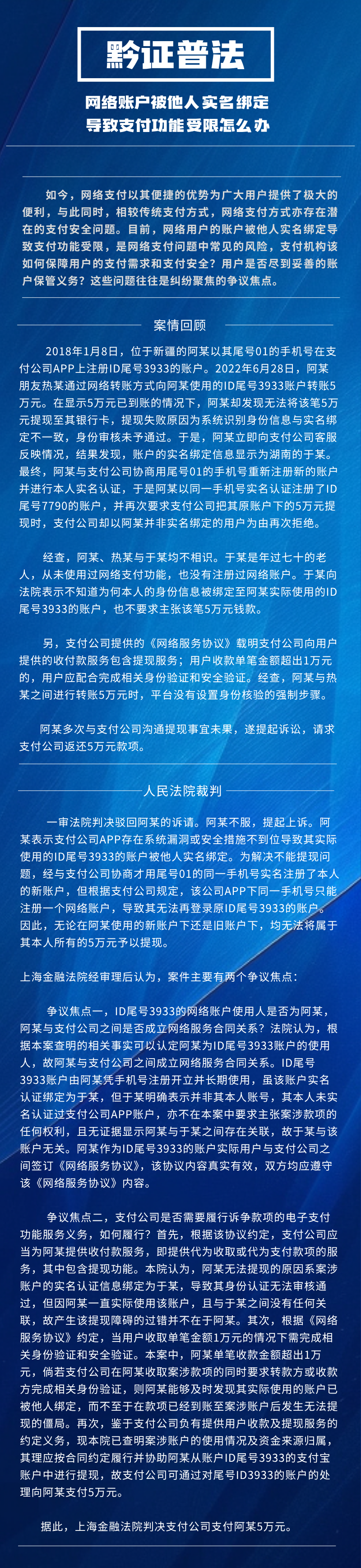 黔证普法丨网络账户被他人实名绑定导致支付功能受限怎么办?