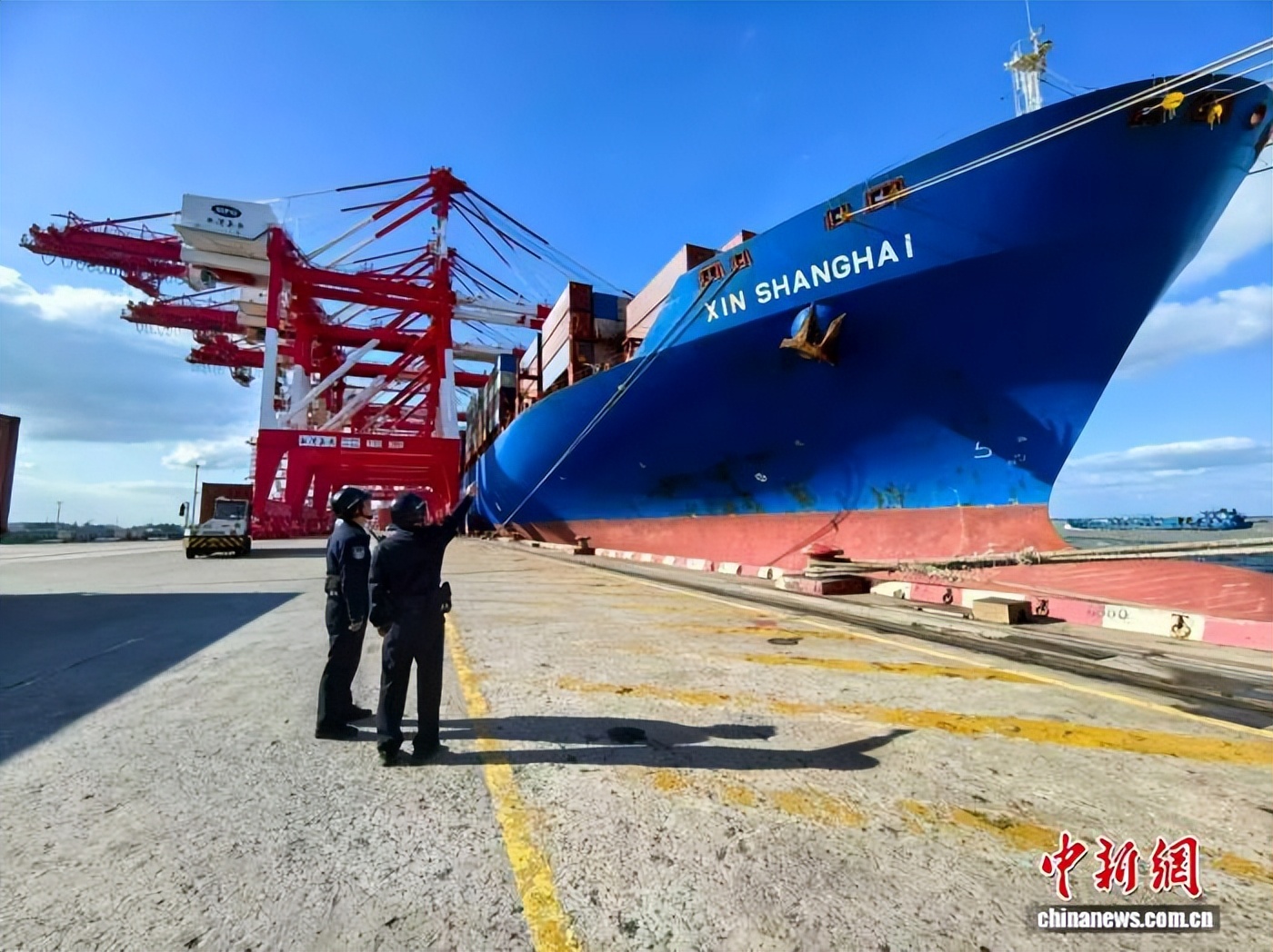 “新上海”轮靠泊上海外高桥口岸。(外高桥边检站供图)