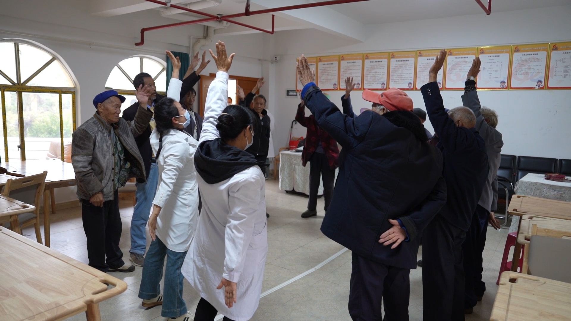 在盘州市竹海镇敬老院里,由盘州市卫健局、市人民医院和竹海镇卫生院医务人员组成的健康检测团队正在例行为这里的老年人检测血压、开展心理疏导、示范关节活动训练等工作,让老年人的身心健康得到最大程度的保障。