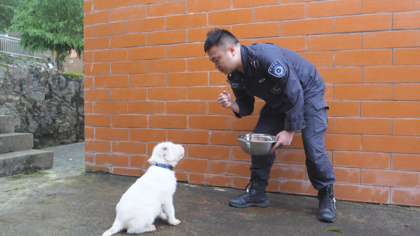 一大早,训导员正在开展喂食、管护等日常管护与幼训培养工作。今年3月,基地新引进两头下司幼犬,纳入常态化幼训体系。