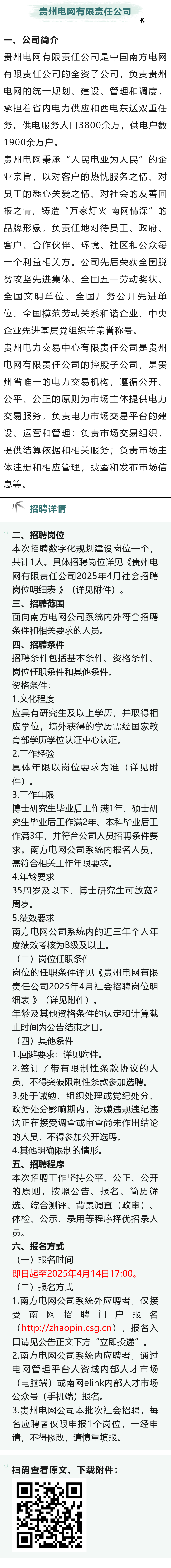 贵州电网有限责任公司招聘!报名截止时间:2025年4月14日!