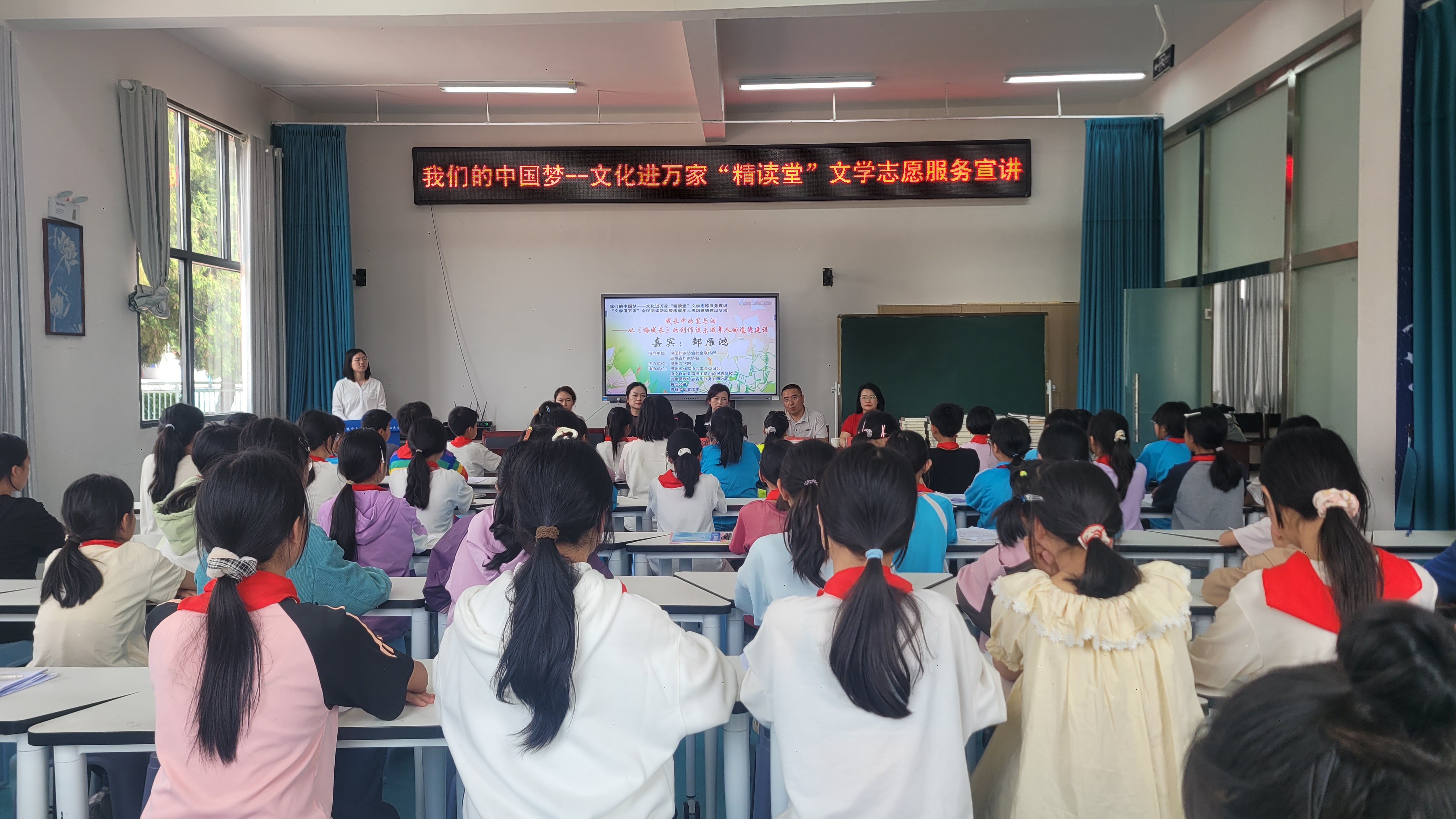 4月16日下午,“我们的中国梦--文化进万家”贵州文学院“精读堂”文学志愿服务宣讲活动,在镇宁自治县扁担山镇中心民族学校顺利举行。本次活动以文学润心、阅读育人为宗旨,聚焦全民阅读推广与未成年人思想道德建设,为该校师生及志愿者带来一场温暖走心的文学课堂。