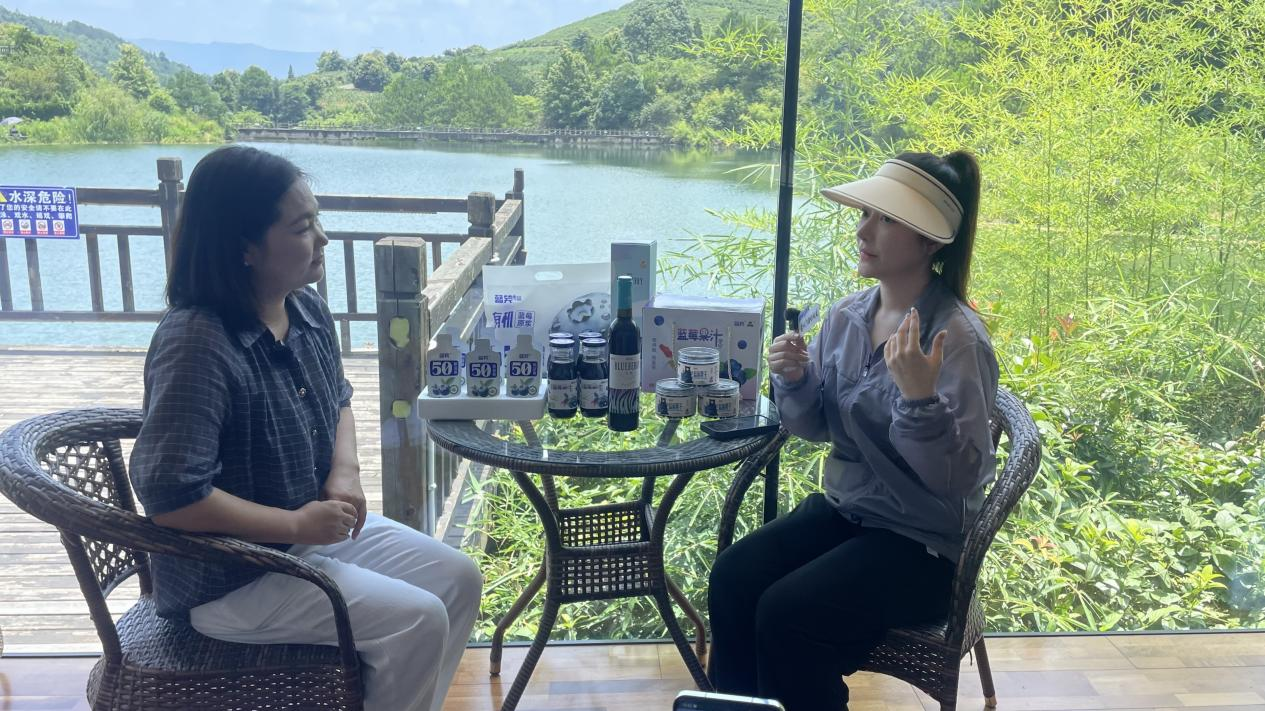 贵州蓝瑞农业科技有限公司讲解员为记者介绍蓝莓衍生产品