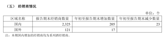 经销商方面,截至三季末国内经销商 2,325 个,较年初有所增加。