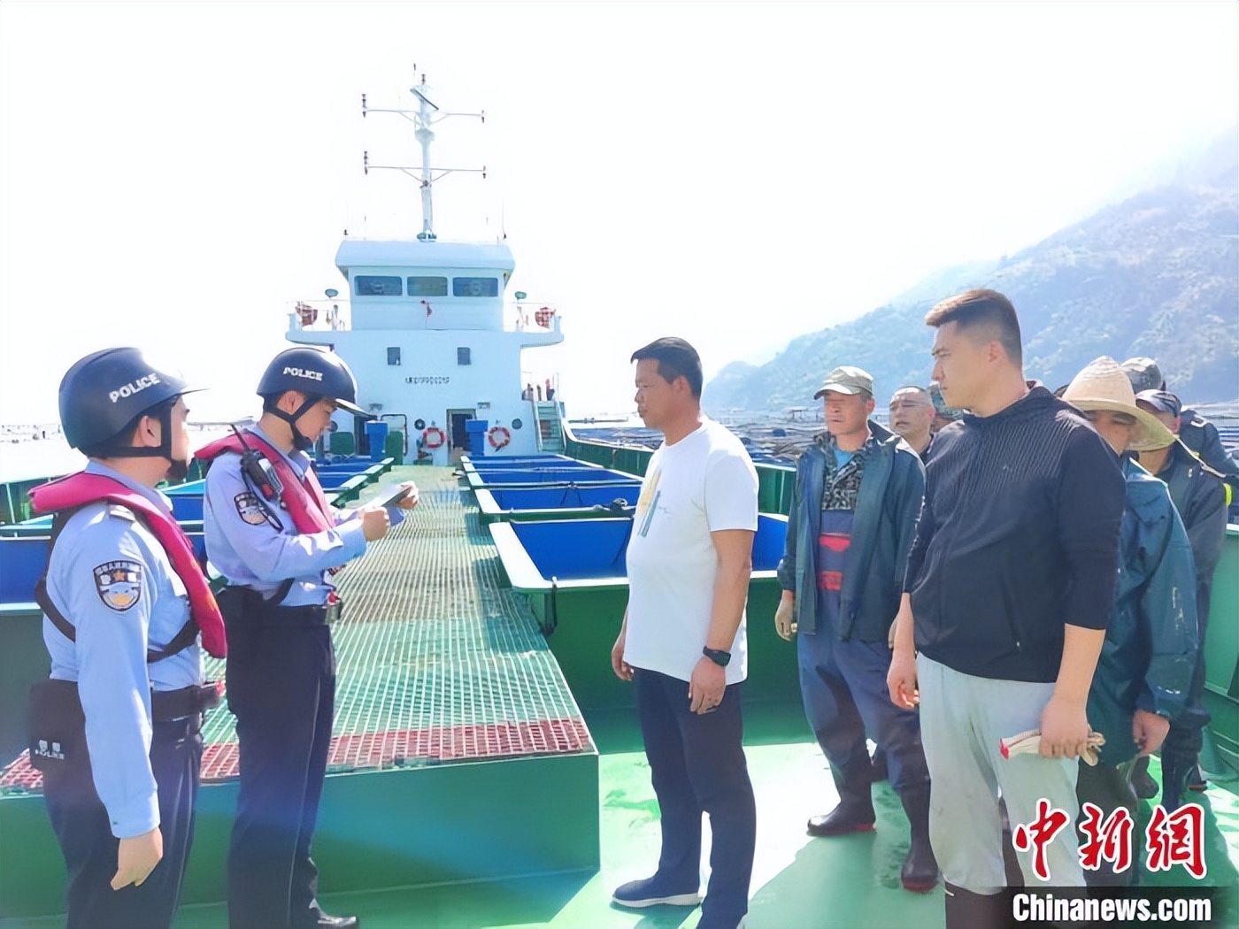 4月16日,宁德三都澳白基湾活水鱼养殖基地内,在宁德边检站移民管理警察和当地渔民的协作配合下,即将出口的活水鱼正有序装入中国籍丰海“96”轮。范正雄 摄