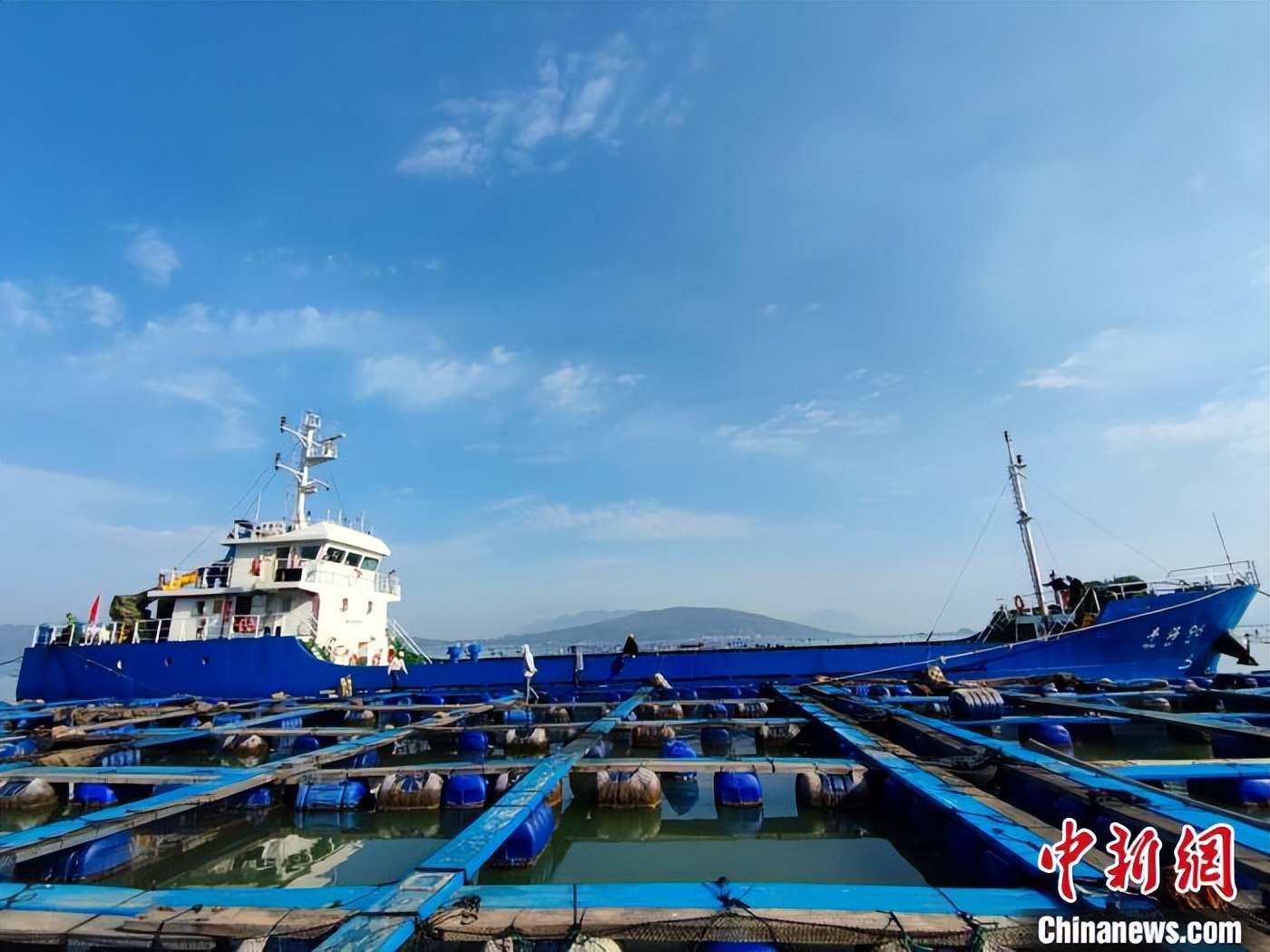 满载46.88吨活水鱼的中国籍船舶“丰海96”轮在完成边检手续后,16日从福建省宁德市蕉城区城澳青山锚地开航前往韩国。
