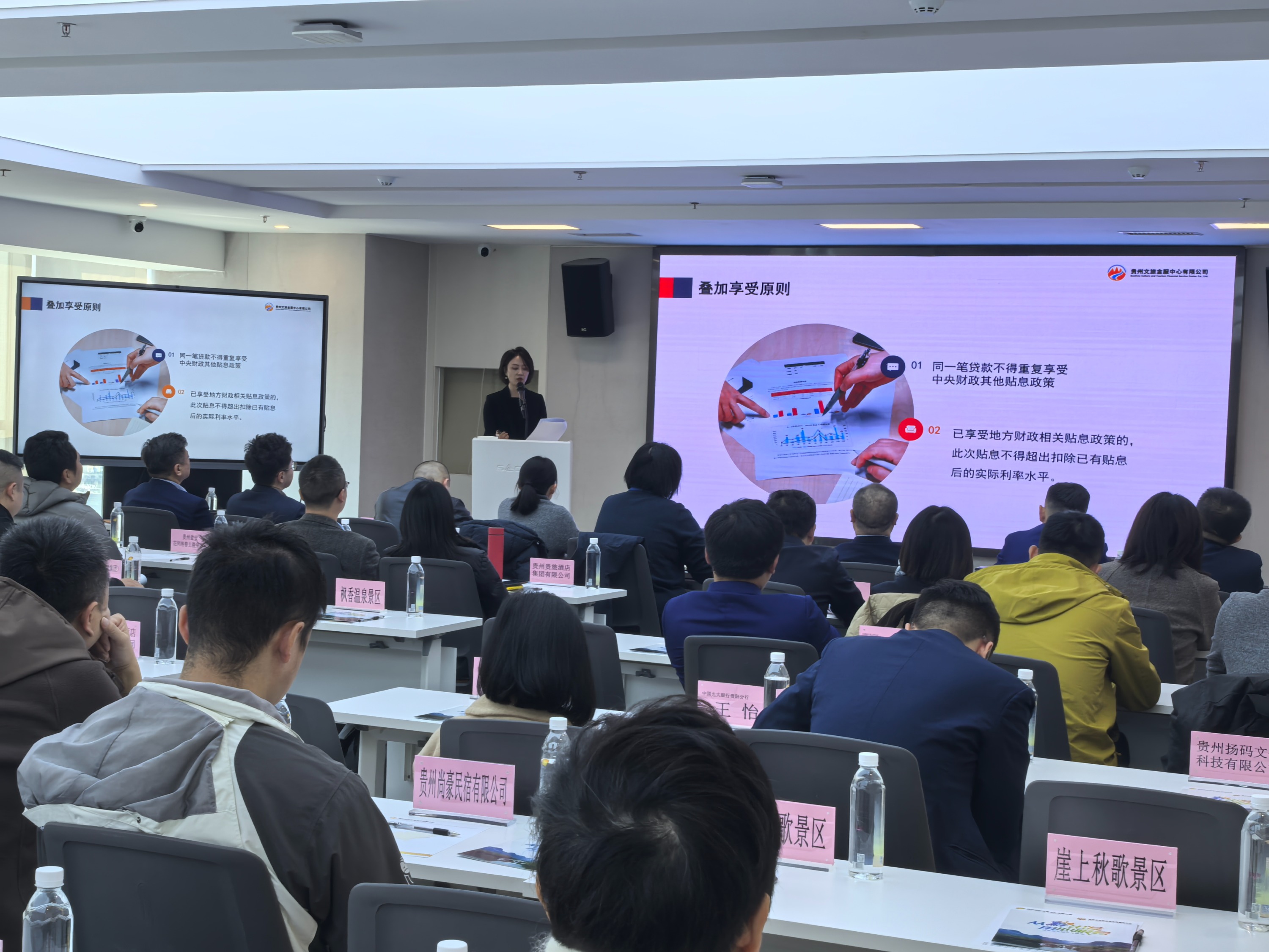 会上,文旅金服中心团队就服务业经营主体贷款贴息政策进行讲解导,帮助民宿、旅居运营主体把握政策红利,降低融资成本。在金融产品推介环节,交通银行、贵州农信、贵州银行、贵阳银行、光大银行、网商银行等6家参会银行,结合民宿旅居行业“轻资产、周期长、需求散”的行业特性,介绍了有针对性的信贷产品,为企业提供多元化融资解决方案。