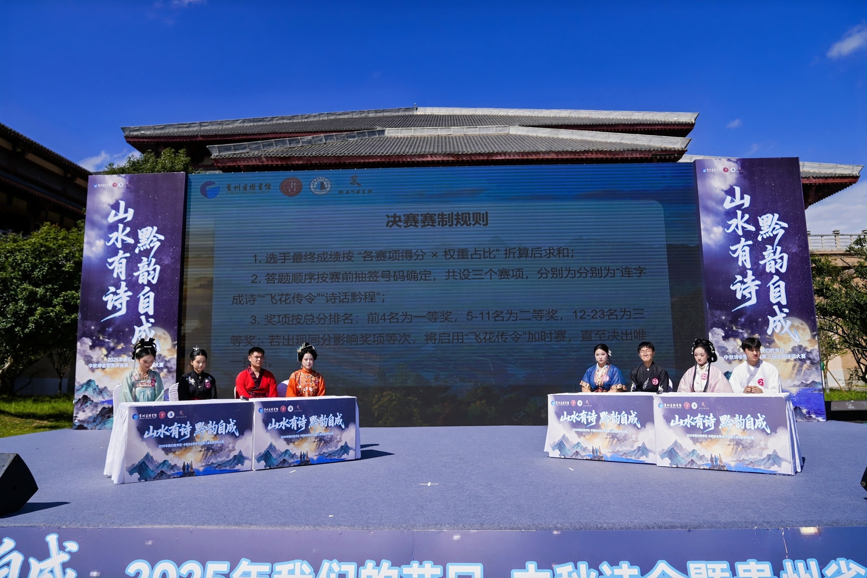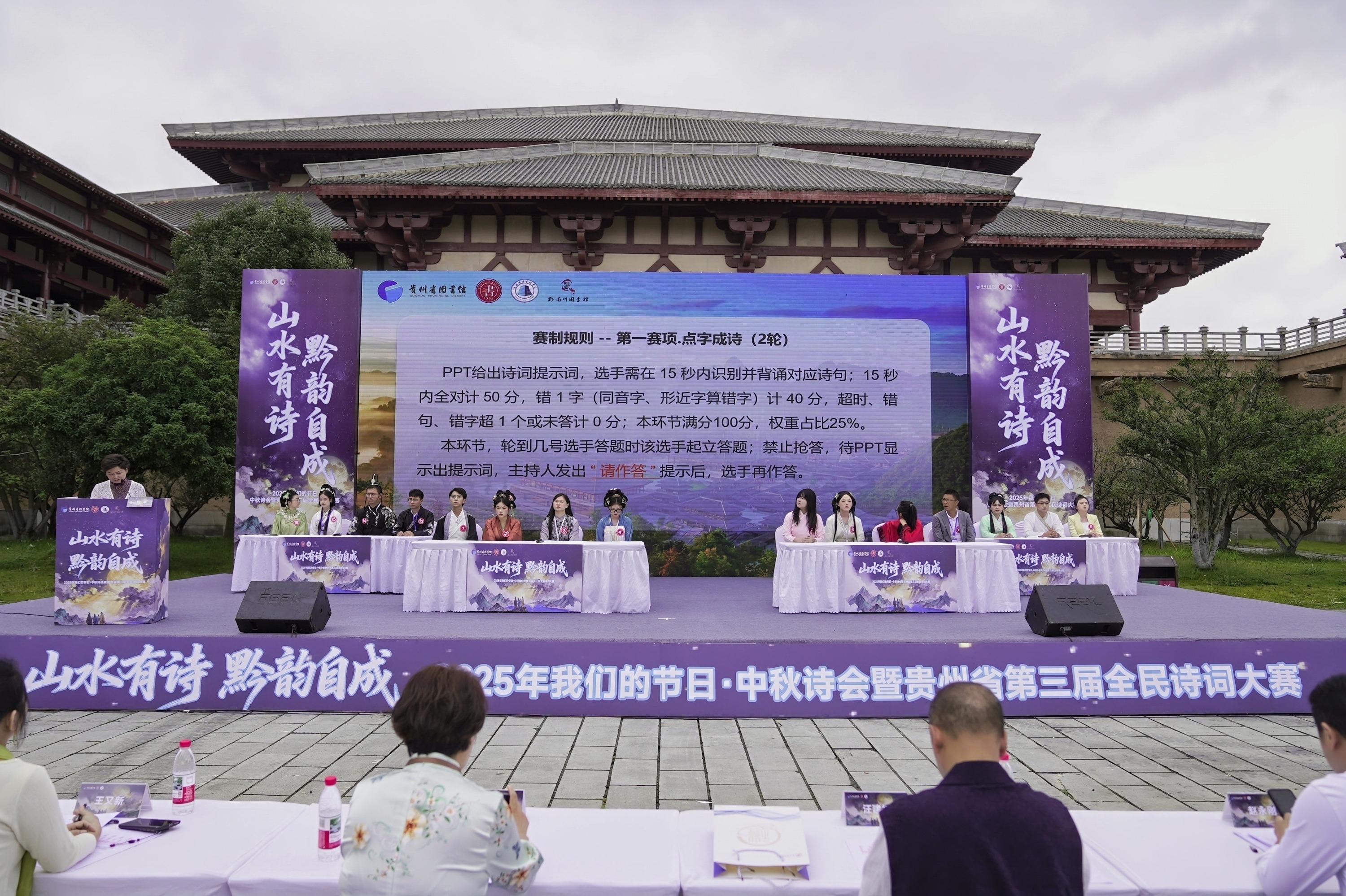 其中,选手以“扇舞夜郎风伴歌,踏声阵阵震山河”体现彝族文化;以“凭栏极目山河壮,两岸落花照急湍”展现花江峡谷大桥的壮阔,以“巨眼凝神探九霄,平塘沃野起新潮”描绘“中国天眼”;以“水书字符藏智,屯堡石墙凝胆”呈现“非遗+诗词”的融合,选手们用诗词激活黔地风华,为传统佳节增添别样文化韵味。