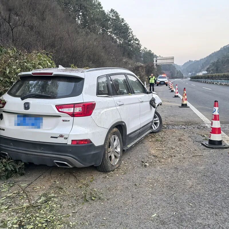 执勤民警通过询问驾驶员谭某得知,当时他驾驶贵C35F**号小型普通客车,从湄潭出发往毕节方向行驶。行至事发路段时由于驾驶员谭某长途行驶,加之午后正是人容易犯困时候,打个盹瞬间,车辆就失控偏离车道,撞向高速公路右侧绿化带,车辆拖行绿化带树子30几米才停下来。