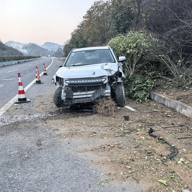 警情就是命令,接警后,执勤民警立刻一边通知就近应急救援部门,一边赶赴事故现场。到达事故现场以后,只见一辆小型普通客车撞停在高速公路绿化带道上,车辆撞得面目全非,受损比较严重,驾驶员站在公路旁,一脸惊魂未定的样子。