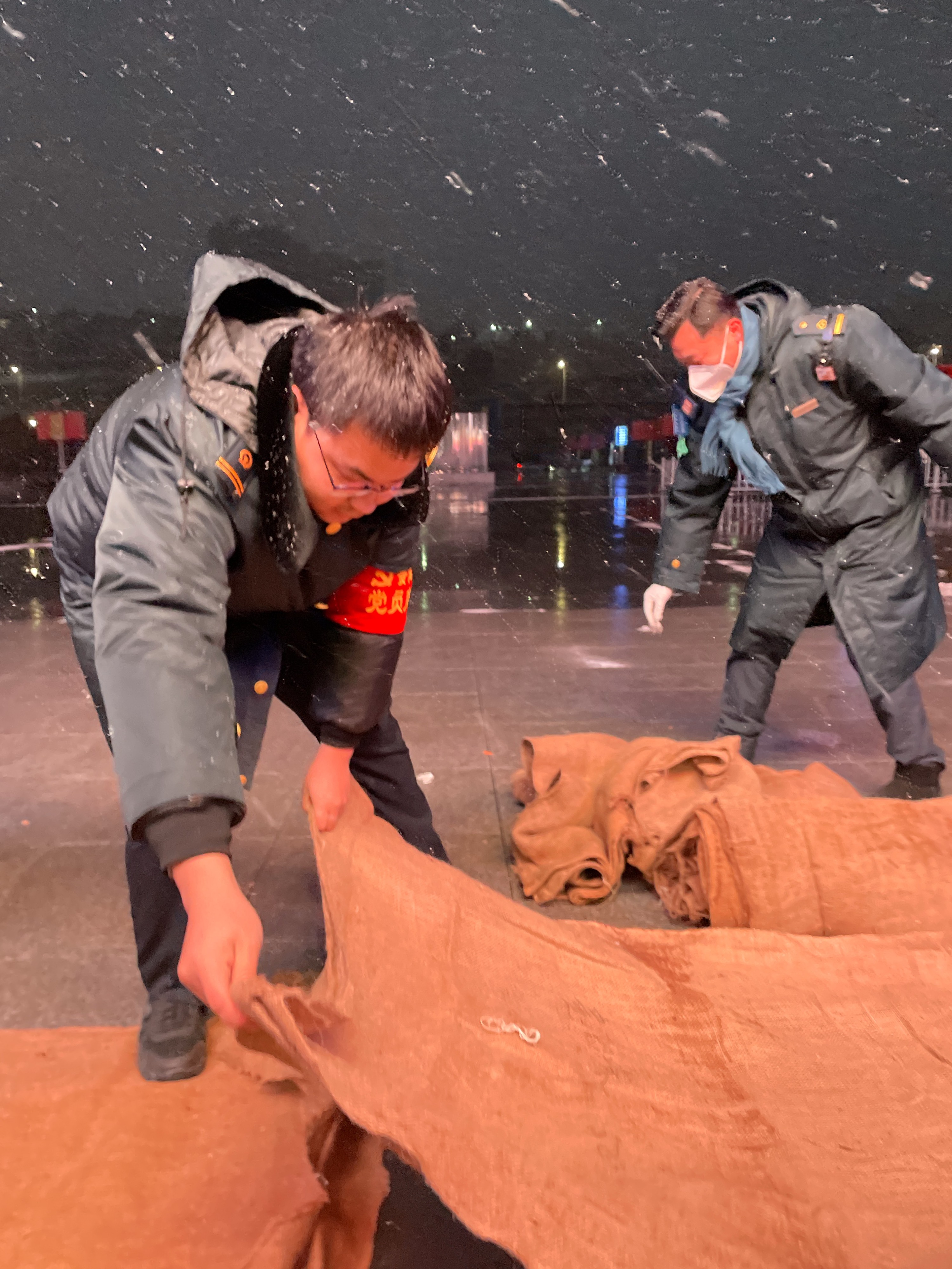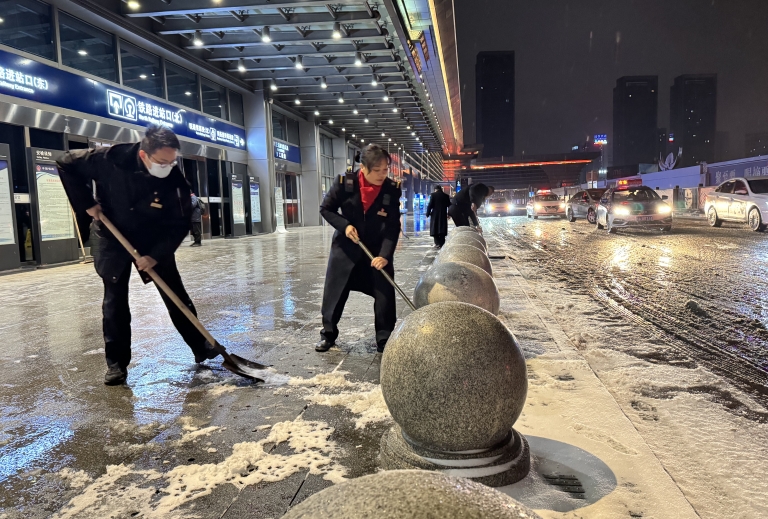 冰雪来袭,立即启动应急预案,组织人员对道岔、线路、信号设备等进行“地毯式”检查,对站前广场、天桥、站台等重点区域的积雪进行清扫和撒盐处理,对特殊重点旅客主动提供必要的帮助,积极引导旅客在网上办理退改手续。
