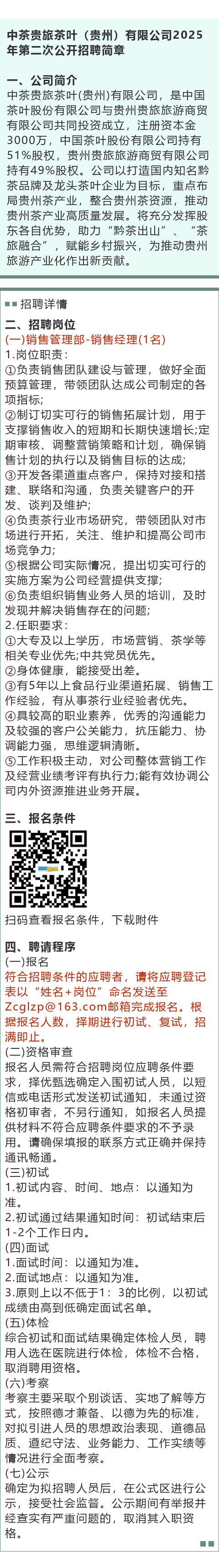 【国企】中茶贵旅茶叶(贵州)有限公司招聘!大专起报!