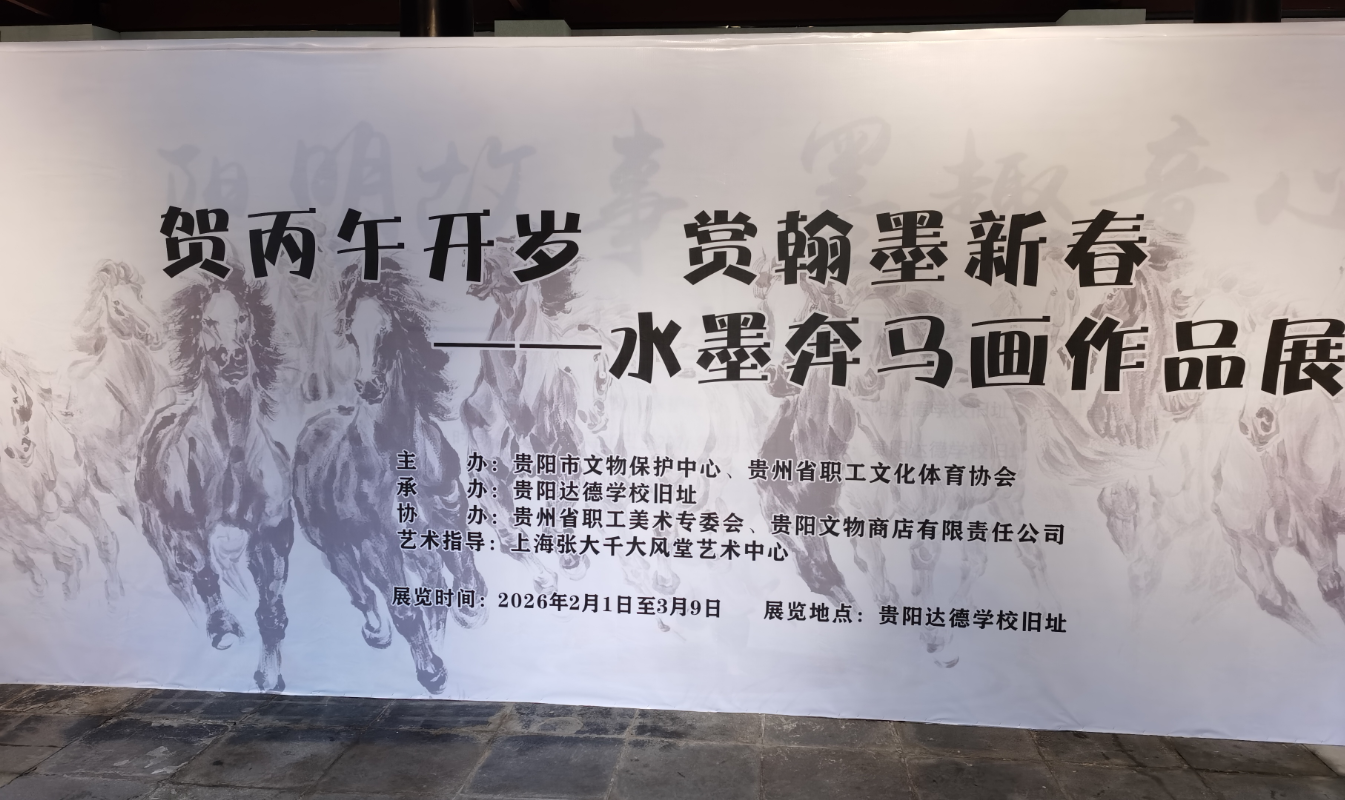 2026年2月1日,贵阳达德学校旧址内翰墨飘香,“贺丙午开岁赏翰墨新春——刘磊水墨马画展”在此启幕。展览集中呈现刘磊先生近年精心创作的82幅水墨马作品,其笔下的骏马以雄浑的气势、生动的神韵和鲜明的个人风格,吸引了众多艺术界人士与市民前来观赏,并收获多方专业好评。