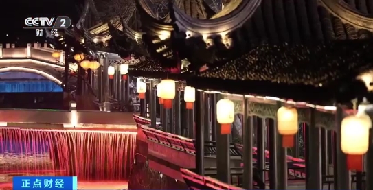夜色中的上海南翔古镇一片流光溢彩,街口的龙门架灯组宛若星光瀑布,一盏盏红灯笼耀眼夺目。在人工降雪的烘托下,传统的江南古镇焕发出别样浪漫,吸引着八方游客。
