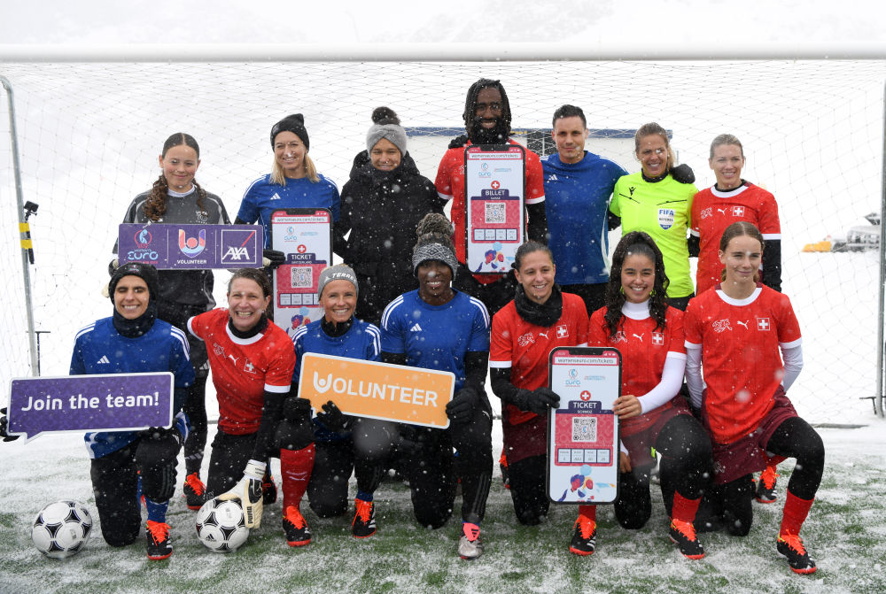 2024年10月1日,第14届欧洲女子足球锦标赛门票启售会在位于瑞士伯尔尼高地的少女峰举办。新华社记者 连漪 摄
