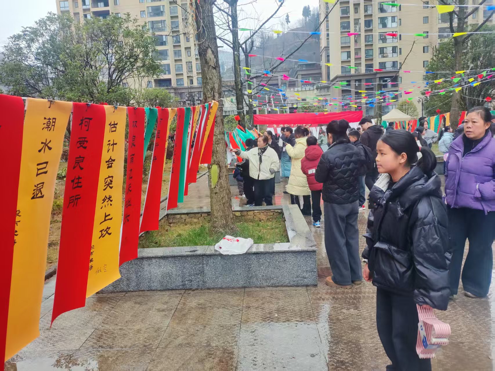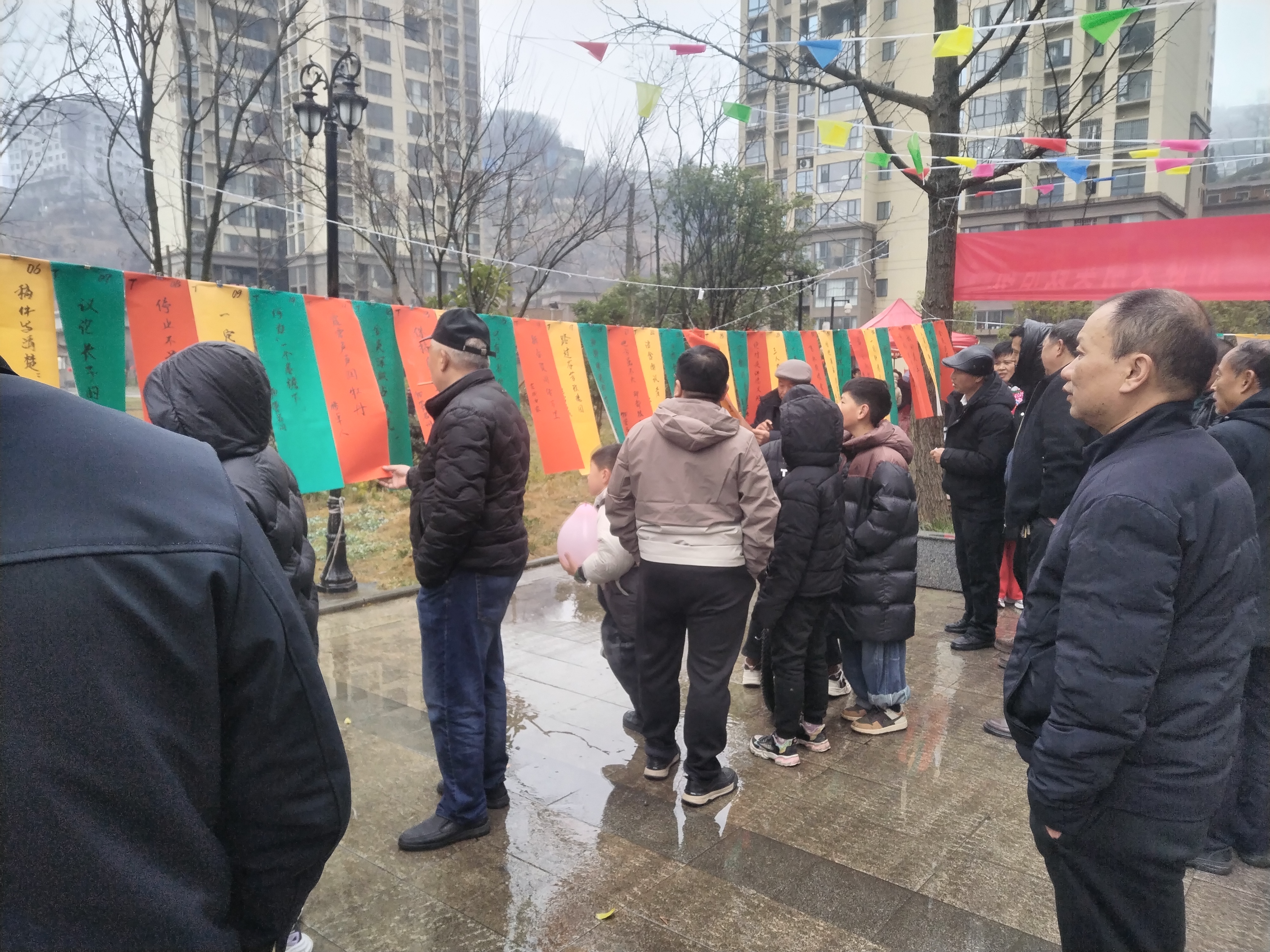 本次春节期间新时代文明实践活动非遗进社区谜作由毕节市级非遗“大方灯谜”传承中心市、县级传承人、协会会员创作,展猜谜作内容涵盖新时代文明实践、社区文化、物业管理、乡土文化及相关百科知识的作品,展猜当天,五颜六色迎风飘扬的谜条,迎来参加小区文艺活动群众驻足猜射,随着一条条被猜中的灯谜发奖,让小区猜谜群众获得奖励的同时,感悟大方灯谜的乐趣。