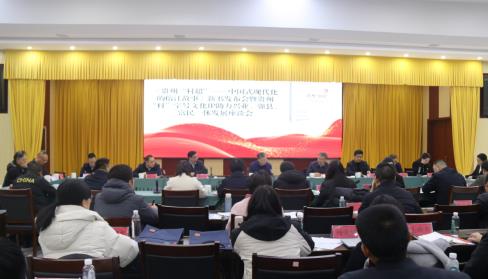 《贵州“村超”——中国式现代化的榕江故事》新书发布会暨贵州“村字号”文化IP助力兴业、强县、富民一体发展座谈会近日在榕江县举办。中央党校中国式现代化研究中心主任、马克思主义学院原院长、一级教授、《“中国式现代化的故事”丛书》总主编张占斌,贵州省委党校(贵州行政学院)分管日常工作的副校(院)长、省委讲师团团长、《贵州“村超”:中国式现代化的榕江故事》主编吴刚平等领导、专家学者、相关部门同志和媒体界代表参加此次活动。
