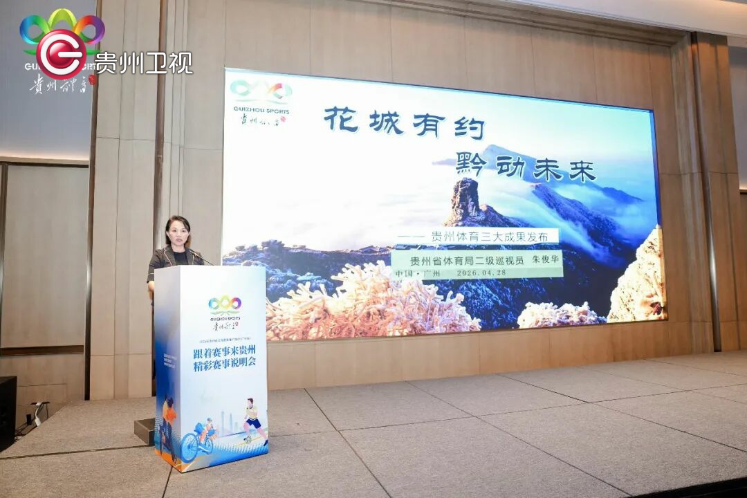 4月28日,“跟着赛事来贵州·精彩赛事说明会”2026年贵州省体育赛事推介活动(广州站)举办。贵州省体育局携手文旅、工商、驻广办及企业,组团推介我省精品赛事体系、山地户外运动魅力与体旅消费优惠,以体育为媒深化粤黔协作,诚邀广东各界朋友来黔纵情山水、乐享运动,解锁旅居新生活。