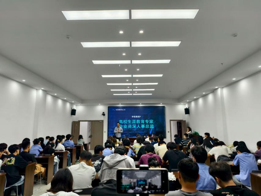 活动围绕自我认知、职业探索、目标制定和行动计划、求职准备四大核心模块展开。高级职业规划师杨洋结合大学生职业规划大赛,讲解职业认知要点,指导学生明确职业方向;通过典型案例分析,传授目标制定与行动计划落地的实用方法,助力学生将职业规划转化为实际行动;同时,他还细致讲解了赛事准备的关键环节,为学生的生涯规划保驾护航。