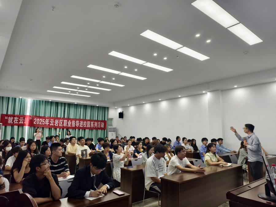 9月11日,“就在云岩”2025年云岩区职业指导进校园系列活动走进贵阳职业技术学院,在该校图书馆一楼宣讲室开展《大学生职业规划指南》主题指导课,现场85名学生参与学习,高级职业规划师杨洋现场授课。