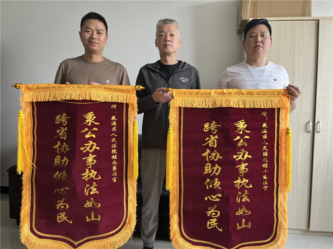 近日,浙江省江山市人民法院为贵阳市花溪区人民法院执行干警送来两面锦旗,诚挚说道:“感谢贵阳市花溪区人民法院协助我院及时控制涉案财产,协助行动非常及时,执行措施非常高效,非常感谢。”一句句真诚话语,体现了黔浙两地兄弟法院联动执行的情意。