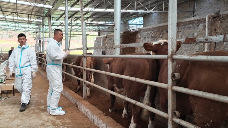 与此同时,“牛超市”从牛源采购到最终出售给农户,每一个环节都经过严格的检疫程序和应激调理,全力保障牛只健康。为了让农户养得放心,“牛超市”还组建了专业的医疗团队,为农户做好售后保障。“市场上或者外地来的牛,我们会给它做应急处理,防止呼吸道疾病和腹泻等疾病,确保我们的每一头牛到老百姓的手里都是健康的。”普定县马场镇活牛超市工作人员刘洋说。