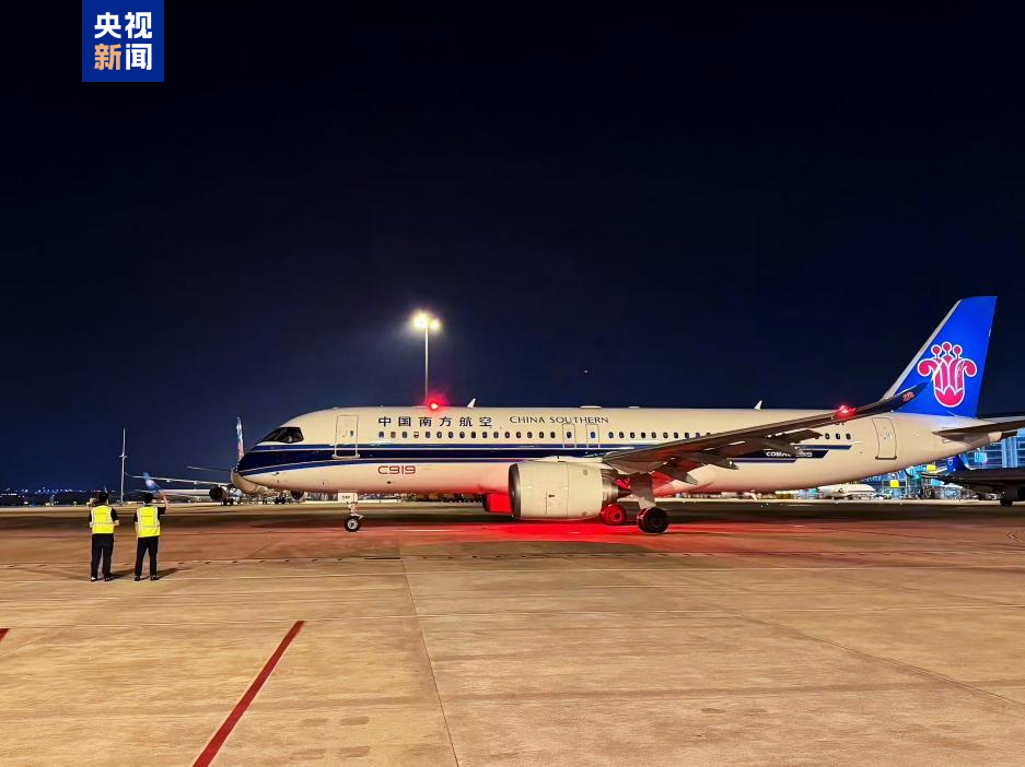 6月4日22时21分,中国南方航空由国产大飞机C919执飞的CZ3383次航班,搭载着139名旅客从广州白云国际机场起飞,于6月4日23时57分降落在河南南阳姜营机场。国产大飞机C919商业运营再添新航线,这也是C919飞机首次正式亮相国内支线机场。国产大飞机C919为助力加快“干支通,全网联”的我国现代化航空运输网络体系建设,迈出关键一步。