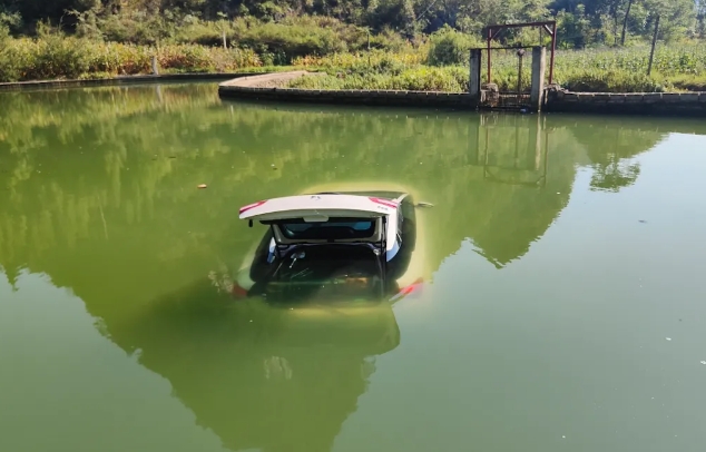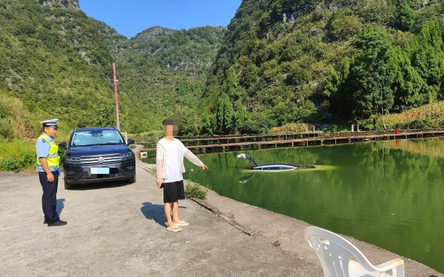 民警赶往事故现场看见,一辆白色轿车静静卧在鱼塘中间,水面几乎淹没车顶,一名年轻小伙站在岸边,面色惨白。