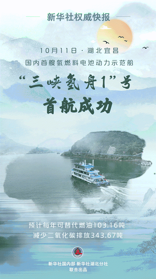 新华社权威快报|国内首艘氢燃料电池动力示范船“三峡氢舟1”号首航成功