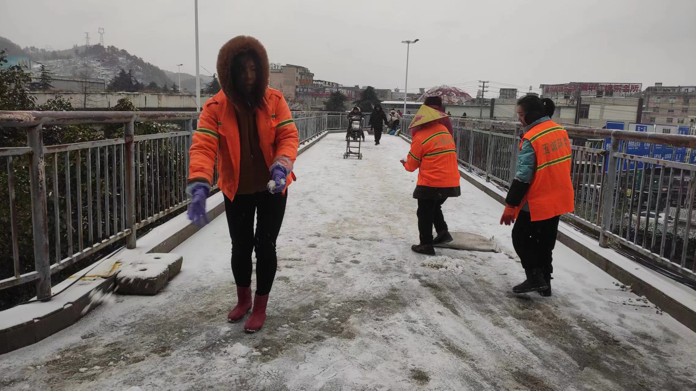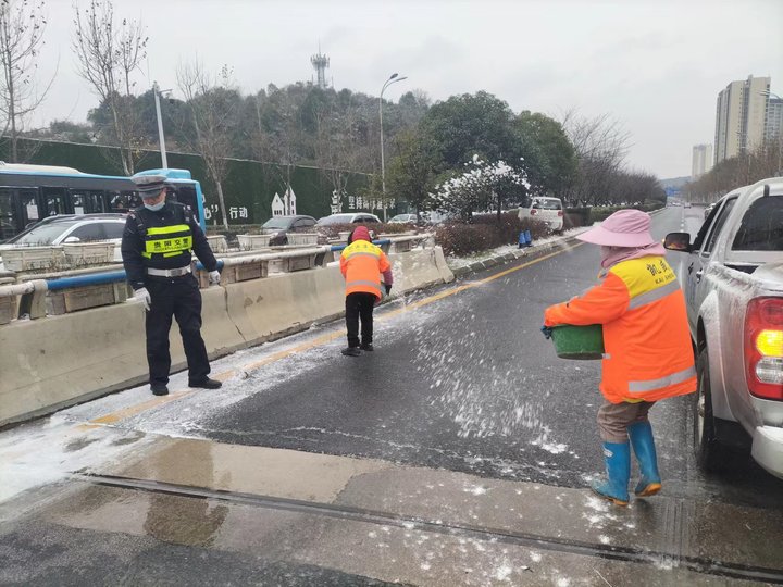 21日晚至22日早上7点,贵阳全市市政、环卫、绿化和执法部门通力配合,对重要桥梁、匝道、隧道、人行天桥、地下通道等地势高区、易凝冻路段(区域)全力开展抗凝冻保畅通工作,共出动巡查、应急3600余人次,巡查车辆350余台次,撒盐73吨。西二环,万东桥、汤巴关路、沙冲路、息烽大桥,马当田大桥、潮水坝大桥路、贵安大道、长江路延伸段、水东大道、同心西路人行天桥、盐沙大道沙文立交桥、盐沙大道石灰坡大桥等地发现凝冻路段33条,均完成处理。