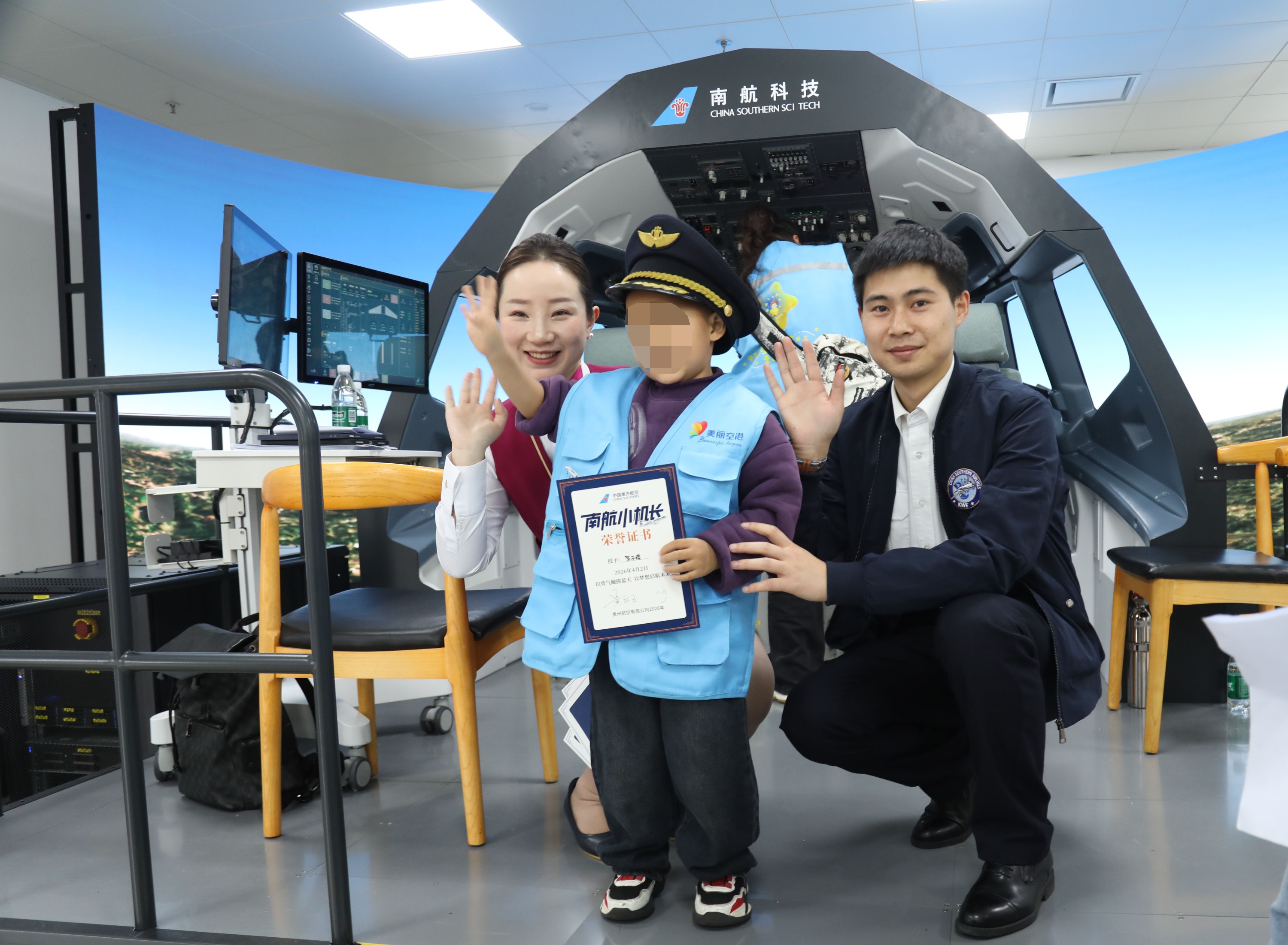 2026年4月2日,在第十九个世界孤独症日到来之际,中国南方航空贵州航空有限公司(以下简称“南航贵州公司”)联合贵阳机场股份有限公司、贵阳市爱心家园等单位,成功举办第十二届“牵手星星的孩子、走进美美的空港”公益关爱活动。本次活动中,南航贵州公司创新启用贵州省首台高仿真飞行模拟训练器(FNPT),首次面向孤独症儿童开放公益体验,打造“科技+公益”融合示范案例,为30余名特殊儿童开启安全、温暖的“蓝天课堂”。