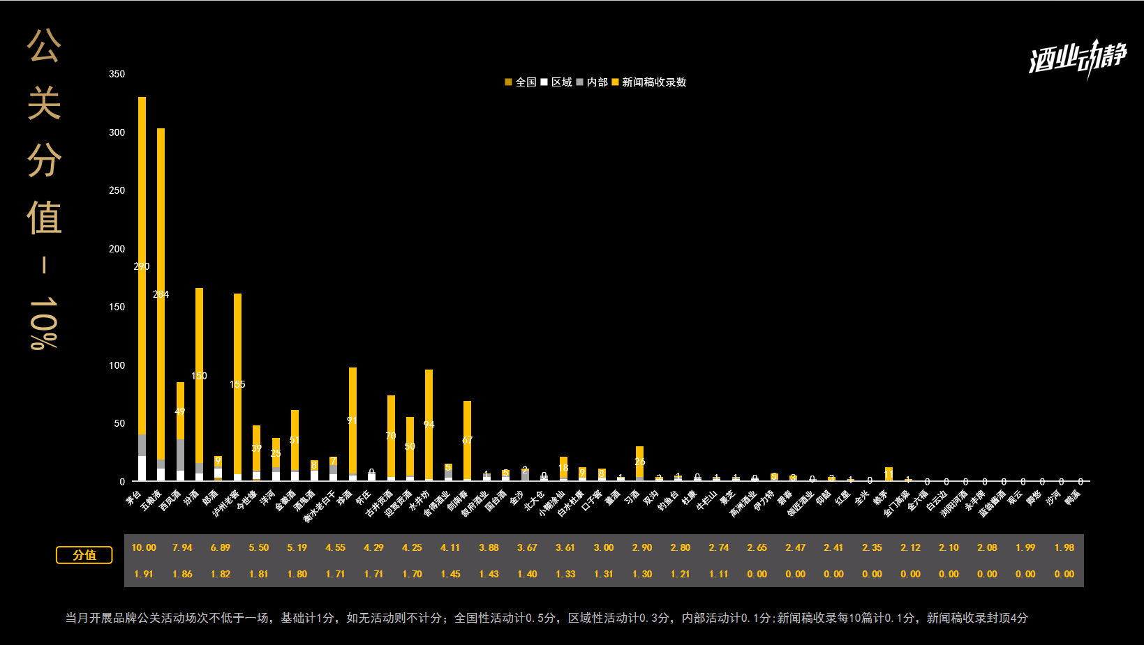 十月中国白酒品牌公关排名