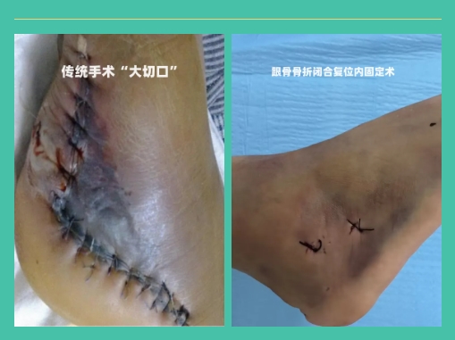 “跟骨骨折钉中钉固定手术”是一种在腰硬联合麻醉状态下行经皮复位的微创手术方式,通过小切口进行操作,与以往需要大切口的传统方法相比,极大地减少了组织的损伤。不仅实现了骨折部位的精确复位,还通过钉中钉系统进行了稳固的固定。这种小切口的方式显著降低了术后感染和皮肤坏死的风险,减少了患者在治疗过程中的身心痛苦,缩短了住院时间,有利于患者快速康复。
