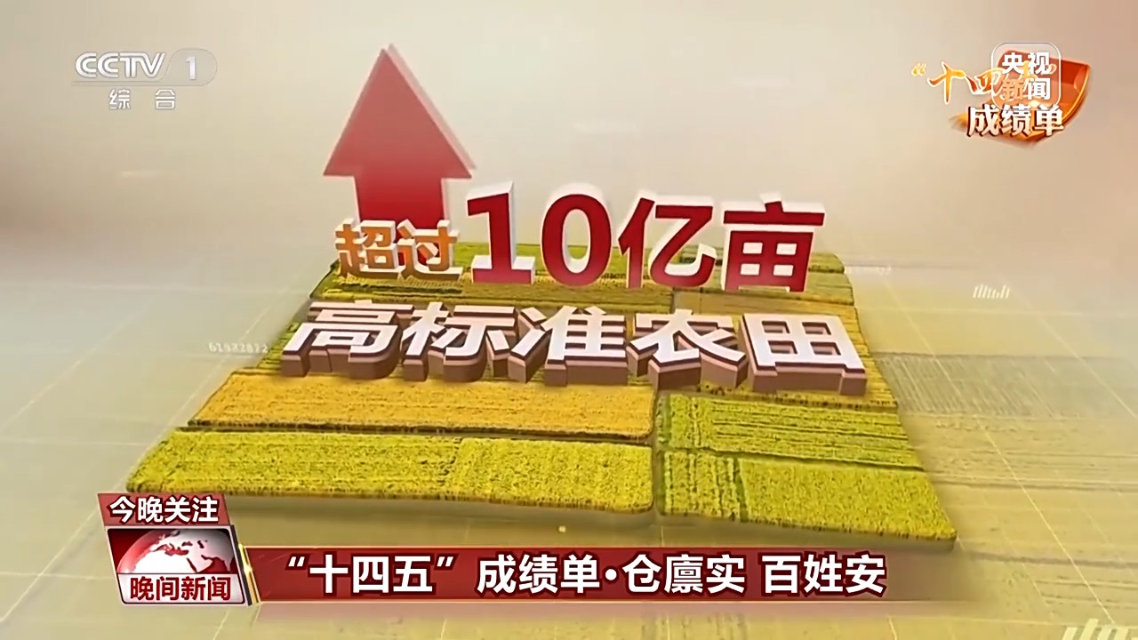 从东北黑土地,到黄淮海主产区、长江流域,我国坚持用现代科学技术服务农业:累计建成高标准农田超过10亿亩,农作物耕种收综合机械化率超过75%,农作物的良种覆盖率超过96%。