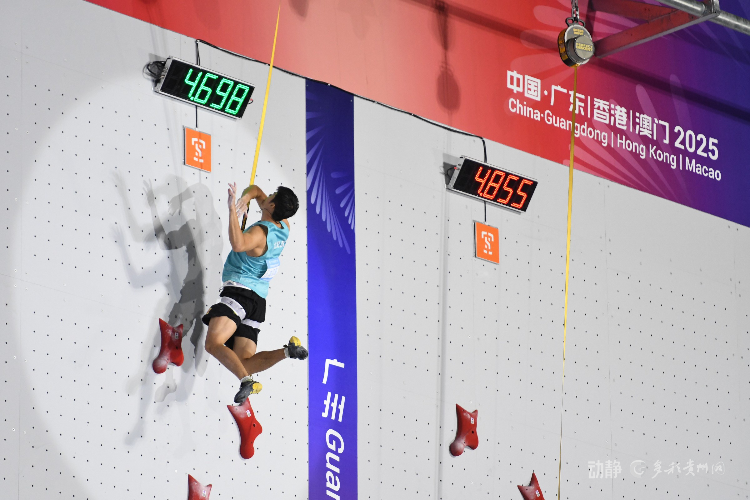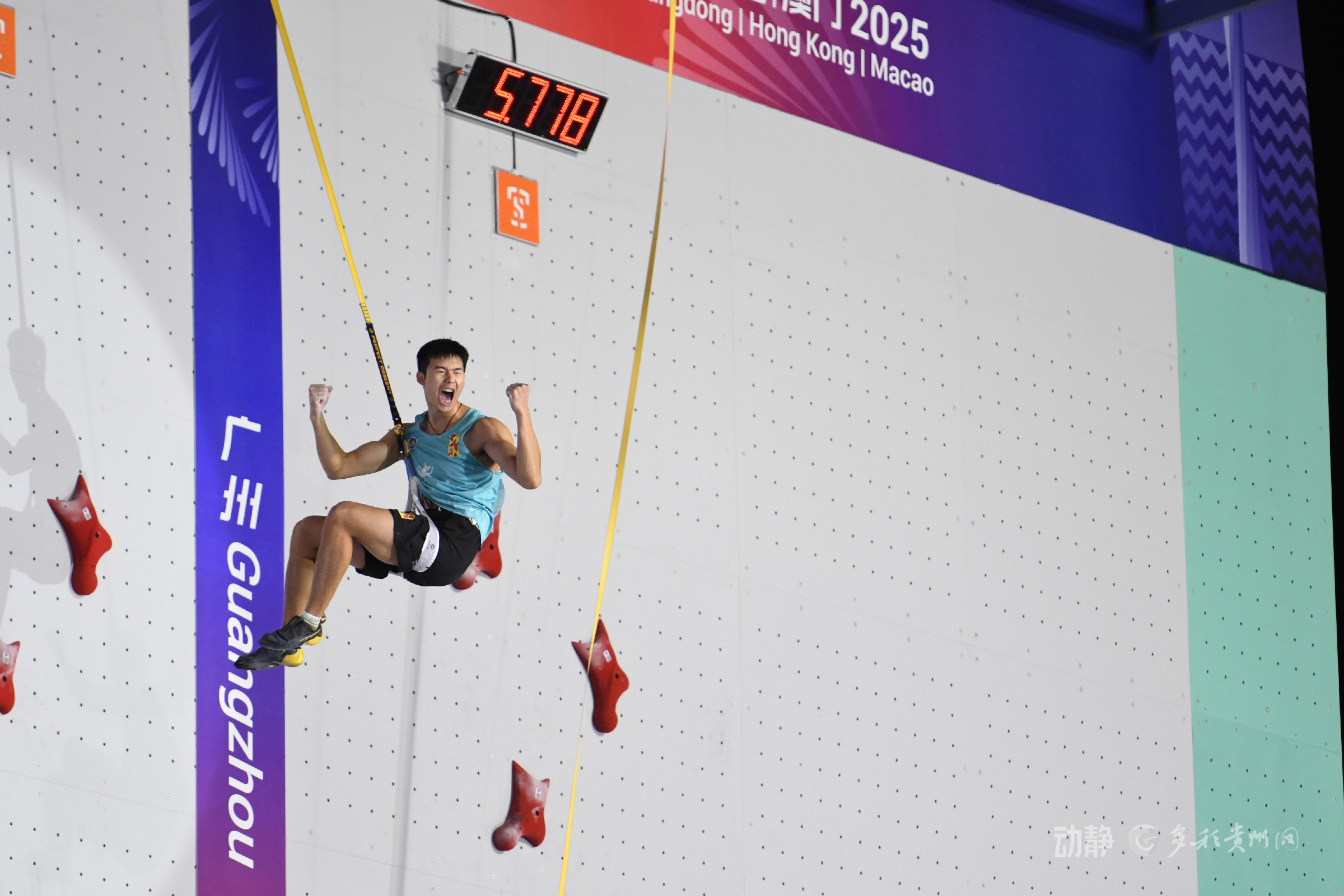 11月14日,第十五届全国运动会上,贵州代表团传来喜讯!上午,贵州运动员黄娟在皮划艇激流回旋女子单人划艇项目中拿下铜牌;当晚的攀岩项目角逐里,贵州运动员龙见国、张少琴分别拿下男子、女子速度攀岩赛铜牌,其中龙见国以4.69秒的成绩刷新该项全国纪录、超亚洲纪录,三位健儿用拼搏为贵州代表团再添荣光。