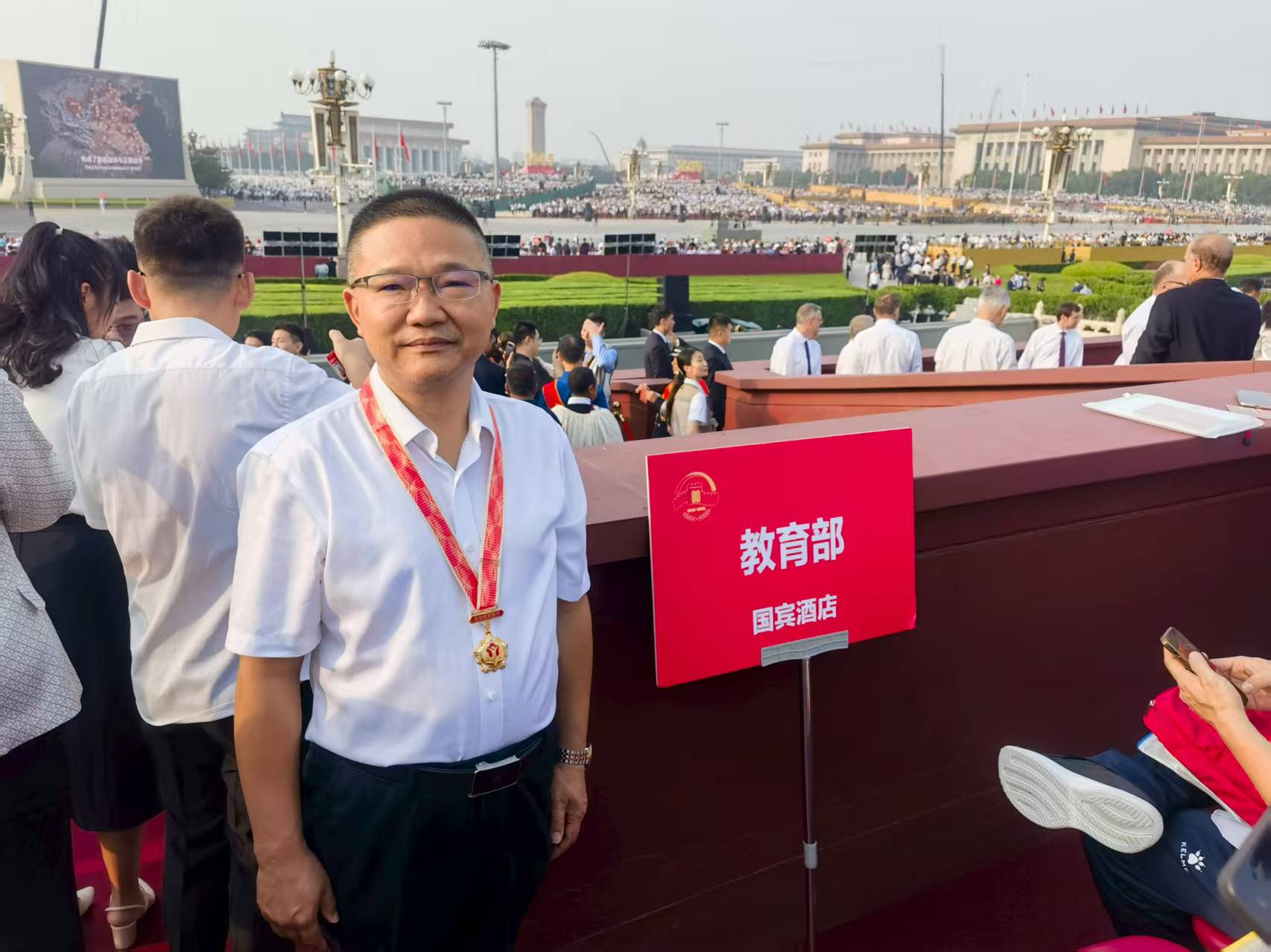 团队积极弘扬教育家精神,立志成为“大先生”,努力成为党和人民满意的“四有”好老师。秉承“坚毅笃实·卓越报国”的院训精神,团队深耕高端装备智能制造领域,主动对接贵州航空航天企业,提供技术与服务,在服务三线企业的实践中弘扬“三线精神”、厚植家国情怀。团队教师入选贵州省普通高校课程思政示范课教学名师,创新开展理论宣传“二人讲”,深入阐释制造业中的新质生产力,引导学生坚定服务国家装备制造业的信念。2025年9月3日,团队教师张富贵教授受邀赴北京天安门现场参加纪念中国人民抗日战争暨世界反法西斯战争胜利80周年大会观礼。