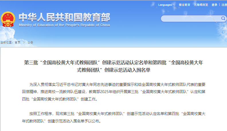 9月5日,教育部公布了第四批“全国高校黄大年式教师团队”创建示范活动入围名单,贵州大学机械工程学院冯毅雄教授领衔的“高端装备智能制造”教师团队入围。