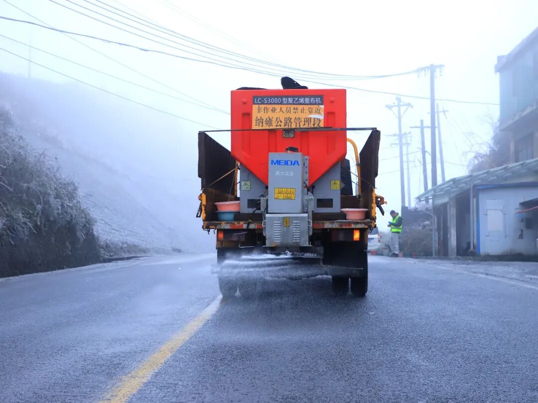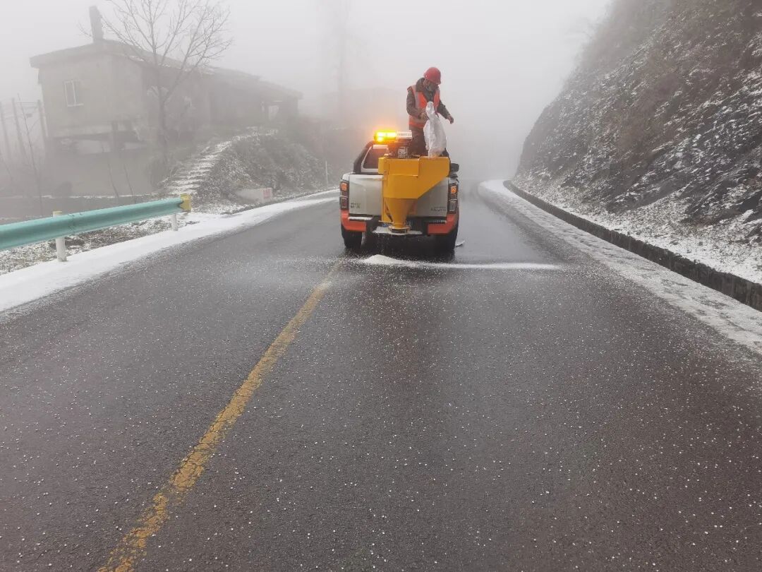 近日,遵义公路管理局闻“雪”而动,迅速启动应急预案,集结应急抢险队伍,调配融雪剂撒布机、巡查车辆等专业设备及时开展融雪除冰作业。