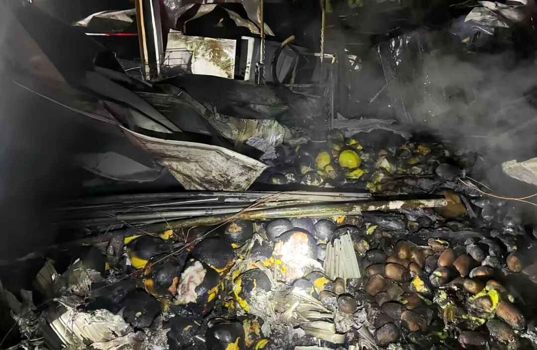 (火势扑灭后店内水果被烧毁)