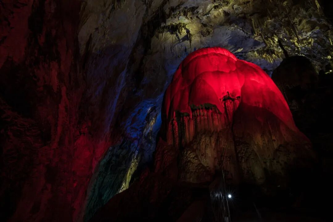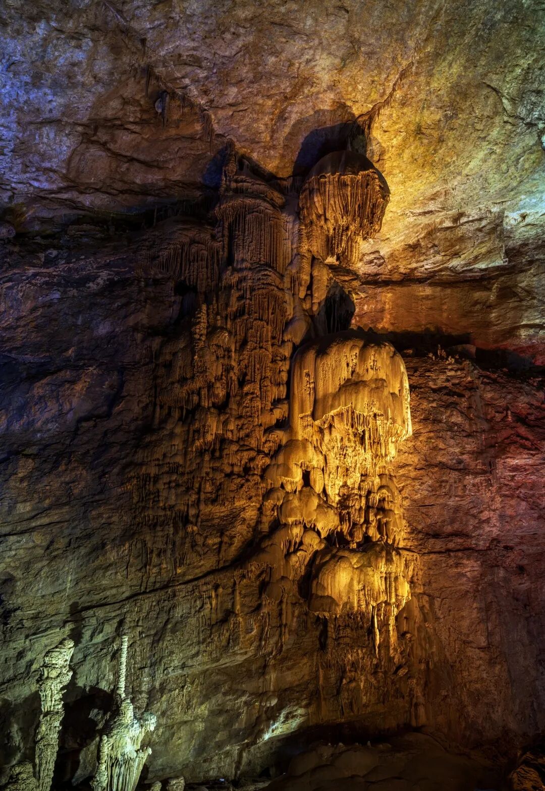 2、 暗光绘岩:关闭常规灯光,在黑暗中以人工精准布光,还原钟乳石原始肌理与地质结构;