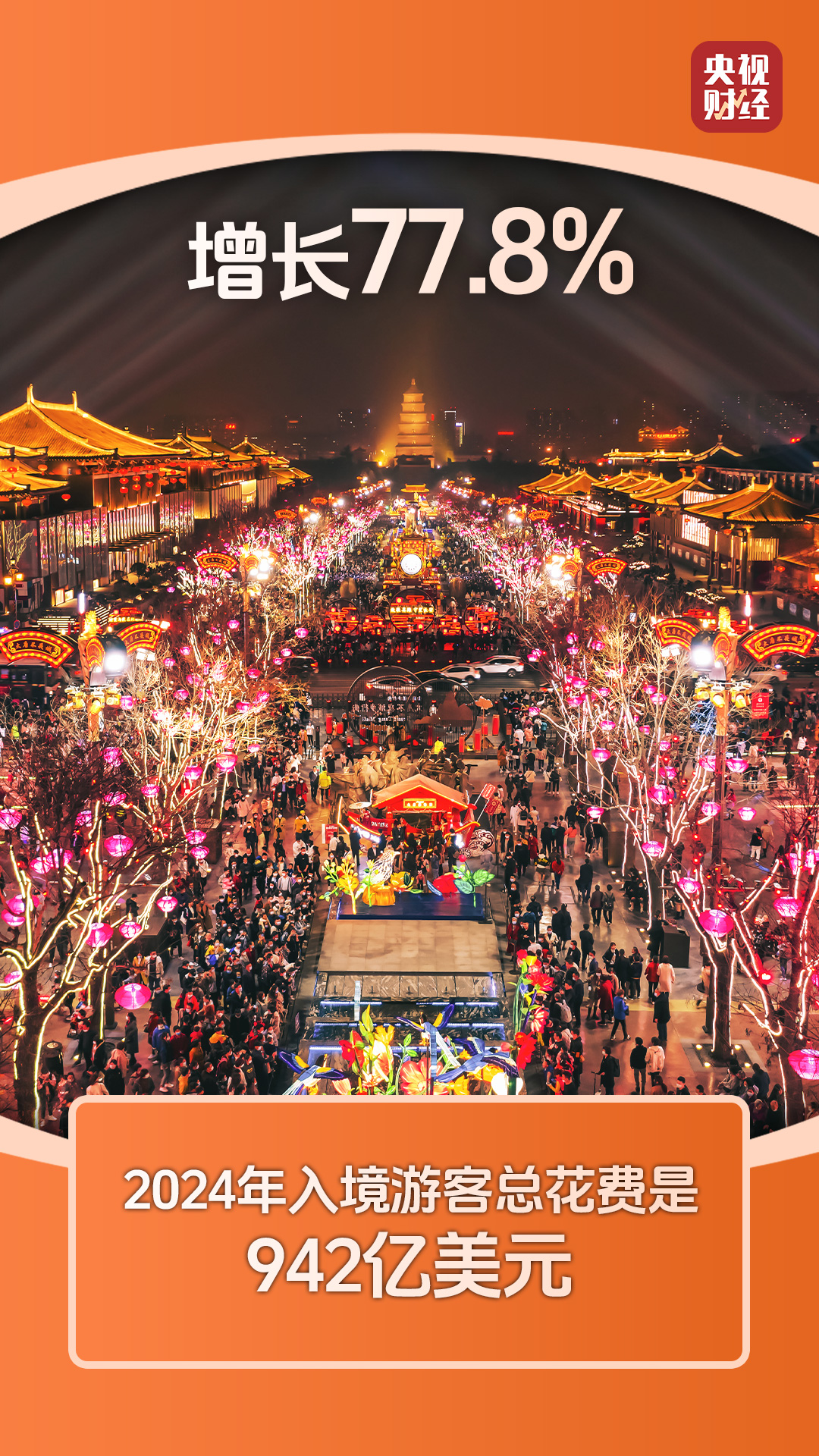 扩大单方面免签国家范围,各方的宾客到中国来旅游购物,感受到“中国购”的魅力。商务部“购在中国”活动,特别是优化了离境退税政策,2024年入境游客总花费是942亿美元,增长的数字很亮眼,是77.8%。“中国游”的网红流量变成“中国购”的增量。