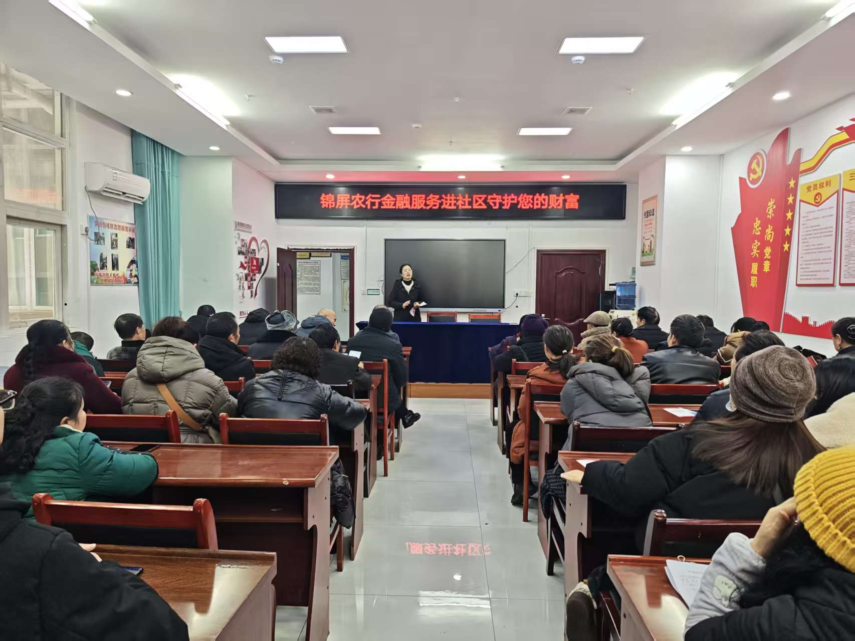 讲座设置的问答互动环节备受欢迎,社区居民及返乡务工人员围绕存款利率、贷款申请条件、日常金融风险防范等热点问题踊跃提问,工作人员逐一细致解答、耐心释疑,现场交流氛围热烈。