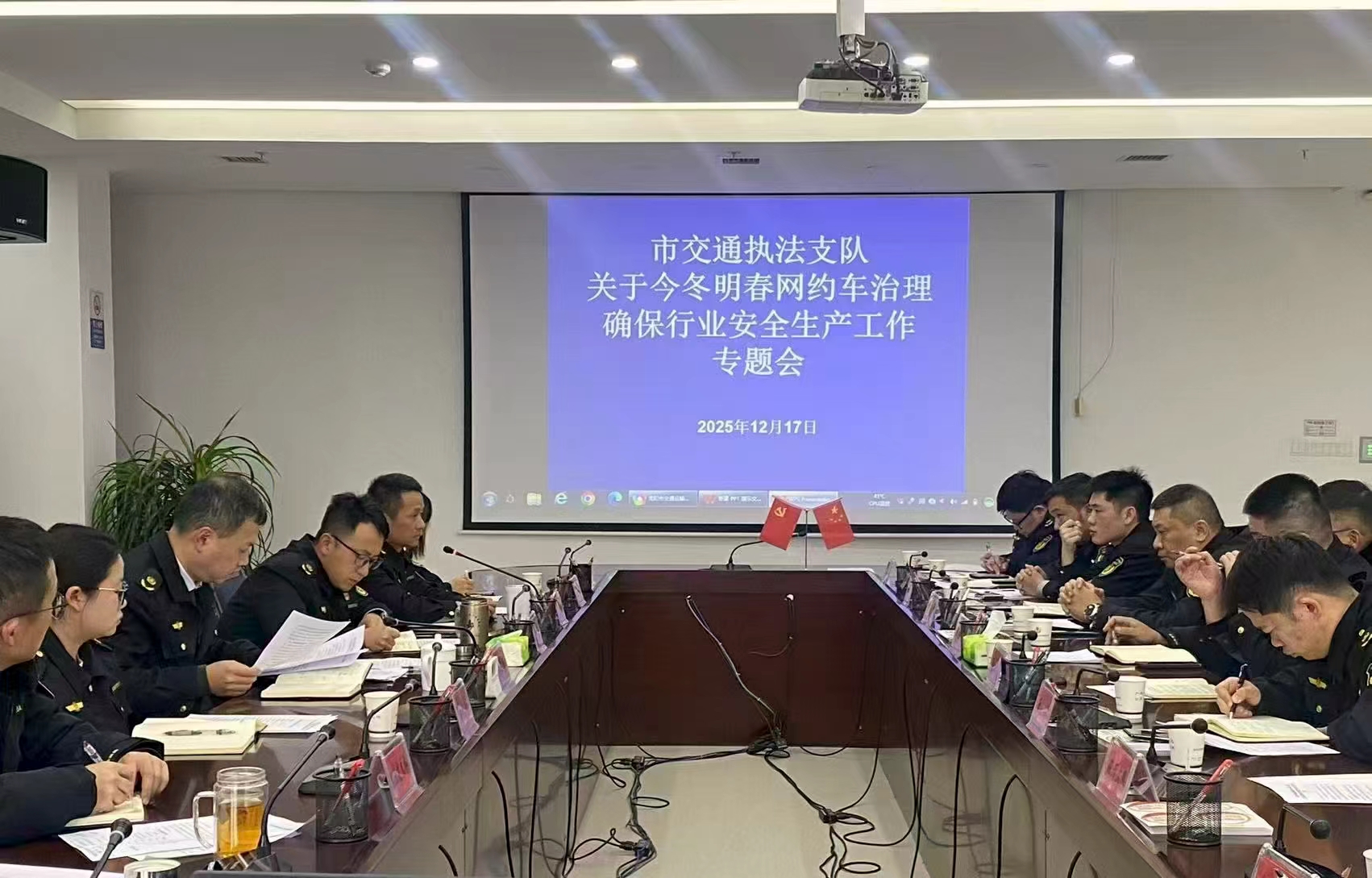 为切实加强今冬明春贵阳贵安网约车行业安全生产执法检查工作,结合道路运输“百日攻坚”专项治理行动,2025年12月17日,贵阳市交通运输综合行政执法支队召开今冬明春网约车治理确保行业安全生产平稳有序工作专题会,以强化执法责任、加强执法力量、优化执法措施等手段压紧压实各级安全责任,确保行业安全平稳有序,守护广大乘客和市民生命财产安全。