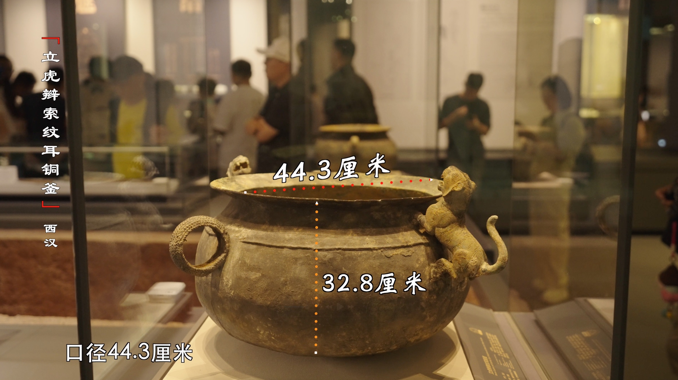 在贵州省博物馆的展厅里,西汉立虎辫索纹耳铜釜静默而立。这件出土于赫章可乐274号墓的青铜重器,高32.8厘米,口径44.3厘米,鼓腹圜底,双耳饰以粗韧的辫索纹。