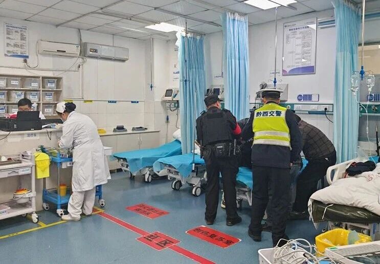 15时57分,仅用了7分钟,就安全护送就医车辆至黔西市人民医院,并协助将患者送入急诊室救治。