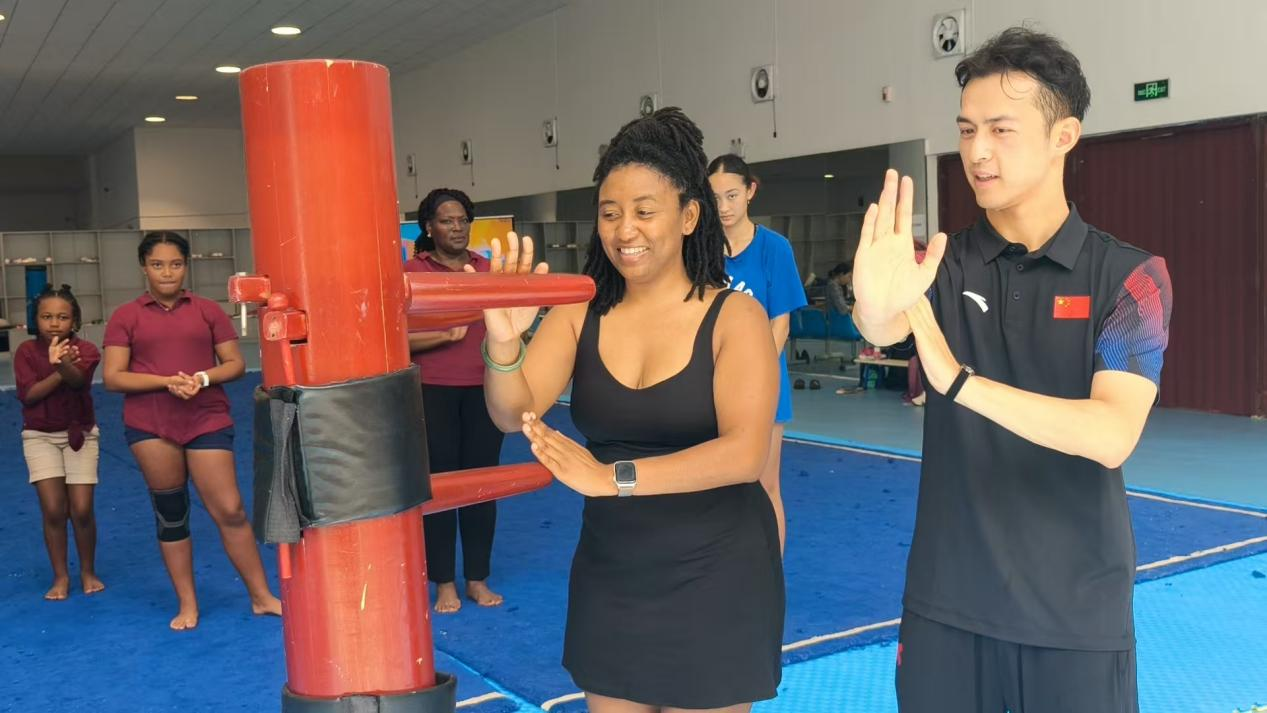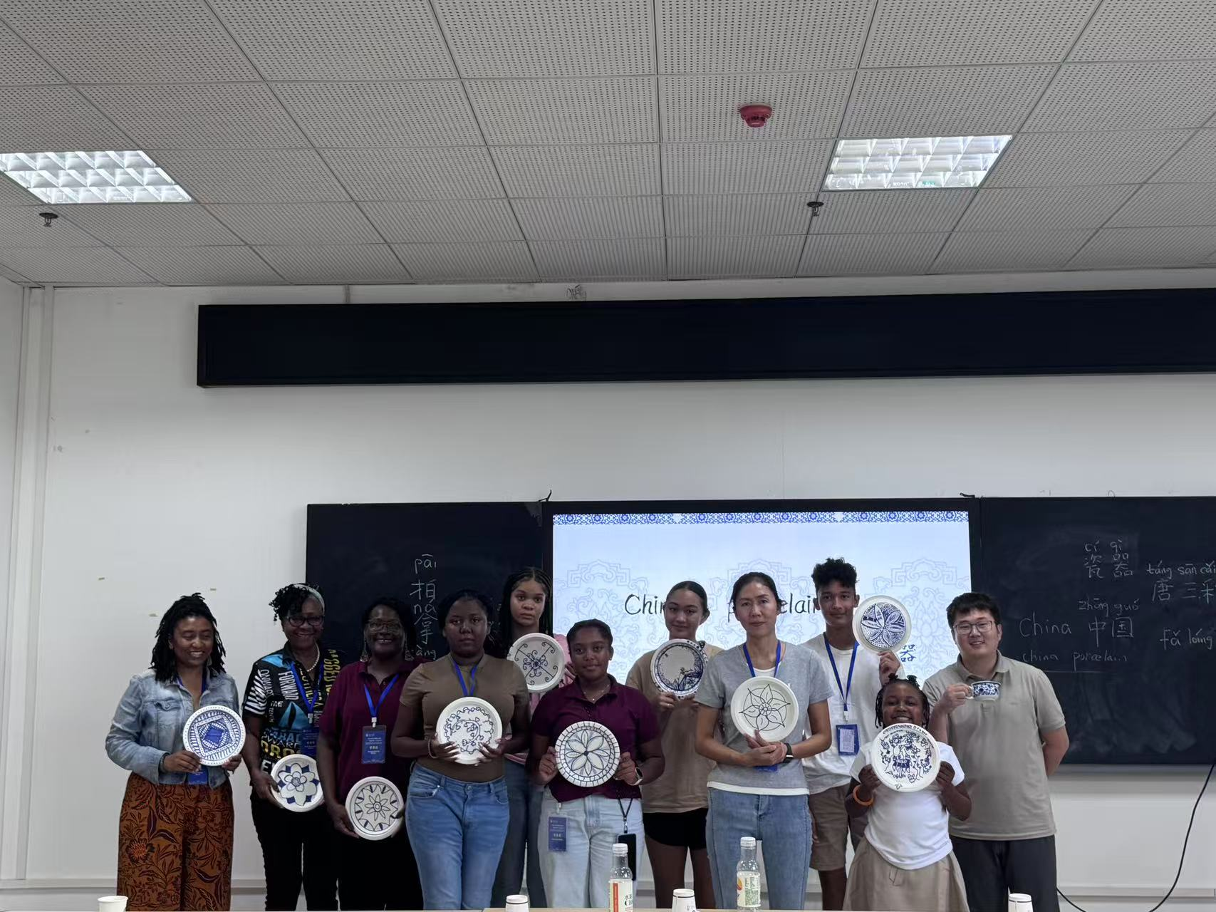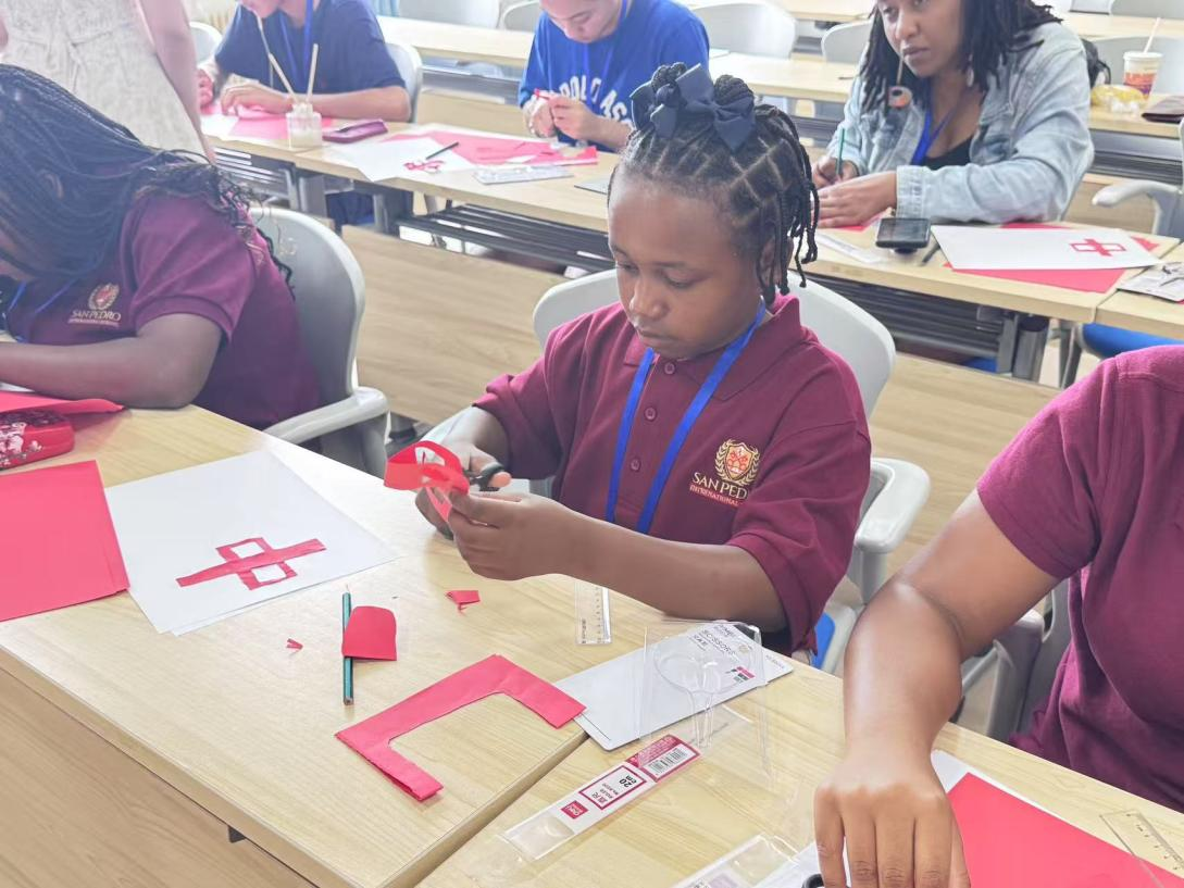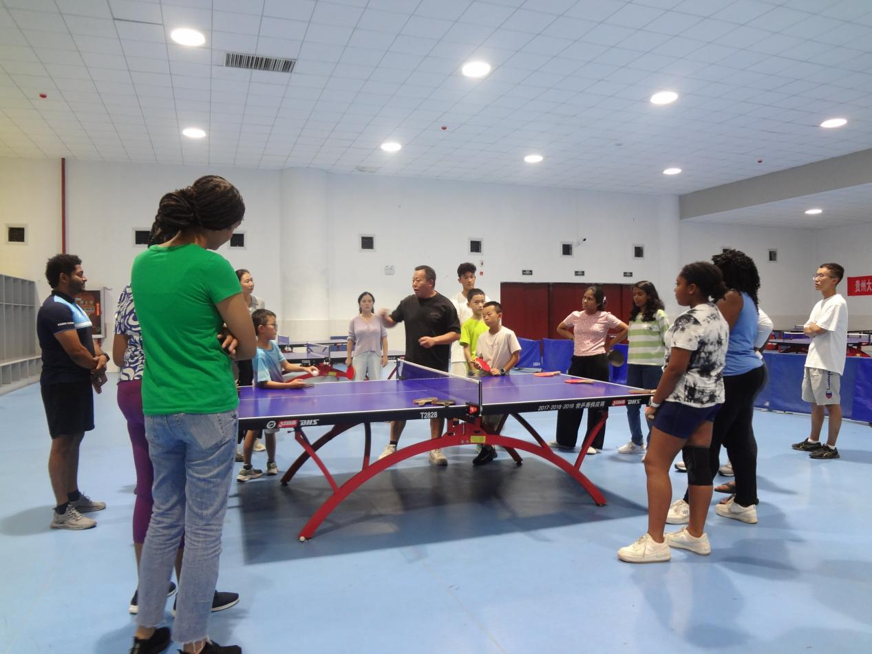 项目以国情教育讲座和贵州民风民俗介绍开场。汉语课堂上,趣味横生的教学方法让中文学习变得生动有趣。传统文化的体验环节也精彩纷呈:“中国茶文化”让学员们亲手参与实践体验,从温杯、投茶到冲泡、奉茶的每一个细节都让他们着迷;“中国瓷器”让学员们在纸盘上手绘青花瓷,领略“China”的陶瓷艺术魅力;剪纸课堂上,一把剪刀、一张红纸,在学员们手中化作‘中巴友谊’的窗花;在太极拳的演练场上,他们跟随教练体会刚柔并济的运动哲学;乒乓球体验中,一场中巴友谊赛让笑声回荡球馆。