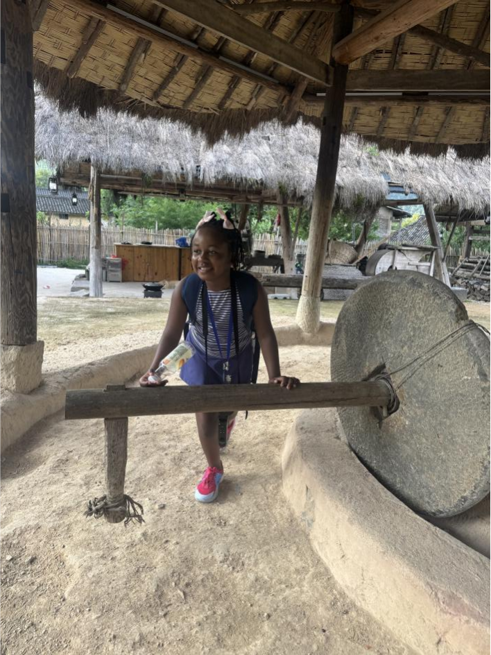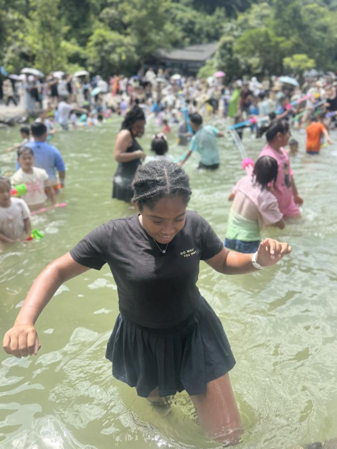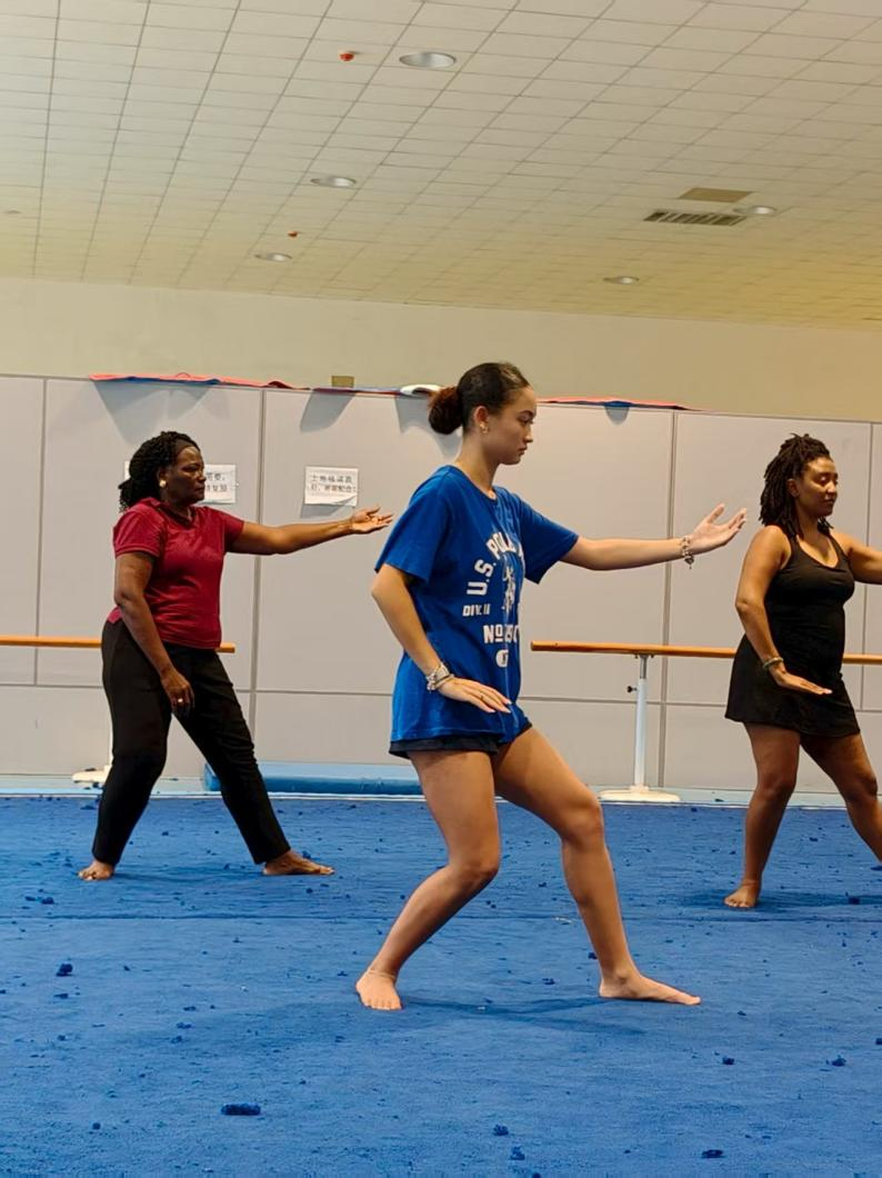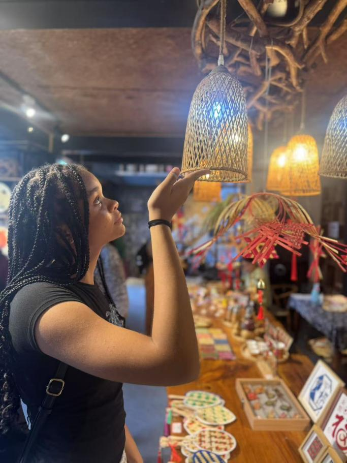 贵州独特的山水文化和丰富的少数民族风情也是学员们难忘的记忆:探访青岩古镇,学员们漫步青石街巷,参观明清古建筑群,触摸贵州深厚的历史文脉与建筑艺术;走进黔南布依族苗族自治州,学员们探访“原始社会遗存的活化石”——瑶山古寨。大家与村民围坐篝火旁,共跳猴鼓舞、学唱瑶歌,沉浸式感受“刀耕火种”遗风与现代生活的交融。学员Demi兴奋地说:“村民的热情和古寨的神秘感让我仿佛穿越时空!”。学员们还来到“地球腰带上的绿宝石”的荔波小七孔,碧水穿石、飞瀑流泉的喀斯特奇观令大家惊叹不已。坐上水上竹排,学员Lola感慨:“这里的山水像一幅未被修饰的画卷,能生活在这样的地方实在太幸福了!”