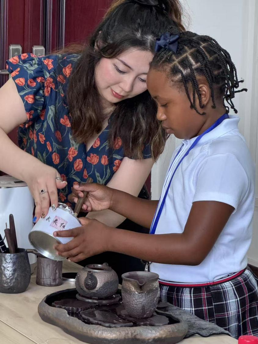 3-巴哈马小学员在老师的指导下体验中国茶艺